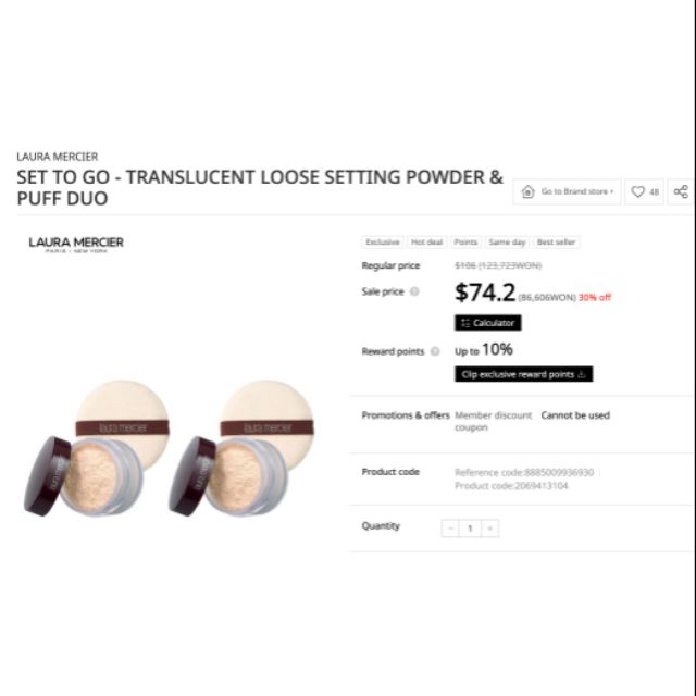 Sản phẩm [ Fullsize 29G ] Phấn Phủ Laura Mercier Loose Setting Powder hiện tại đang được bán Giảm Giá Nhiều Nhất 4% cùng với giá thấp nhất là 190.000đ và cao nhất là 690.000đ. So với giá cũ đang bán trên thị trường với giá thấp nhất là 200.000đ và cao nhất là 720.000đ, đồng nghĩa với việc mua sản phẩm tại thời điểm này bạn sẽ tiết kiệm được từ 10.000đ cho đến 30.000đ.