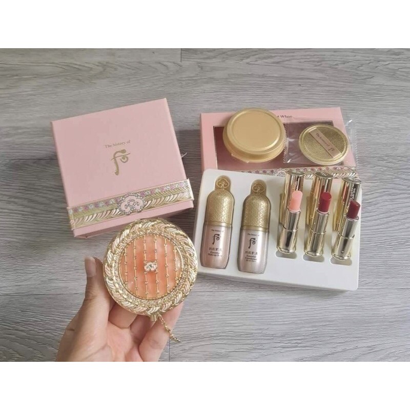 Đẹp long lanh - lung linh luôn 🥰🥰 ❤❤Giá: 2200k Set gồm ✅1 hộp chính ✅1 lõi sơ cua ✅1 kem lót mini ✅1 kem nền mini ✅3 son dưỡng whoo có màu 👍 Phấn phủ whoo-Phiên bản giới hạn năm 2020,SIÊU MỎNG MỊN TỰ NHIÊN & KIỀM DẦU - ĐẸP NHẤT - SANG TRỌNG BẬC NHẤT TRONG CÁC LOẠI PHẤN Mỗi năm chỉ sản xuất 1 lần duy nhất vào tháng 11 với số lượng cực kì ít ỏi 👍 Phấn cao cấp Whoo Gongjinhyang Mi Luxury Pact phiên bản đặc biệt 2020 👍Vỏ hộp phấn được thiết kế bởi những nghệ nhân nổi tiếng của Hàn. Và được chạm khắc, gắn từng viên đá, tinh tế cầu kì tới từng chi tiết. Mỗi một hộp phấn tựa như một kiệt tác nghệ thuật tinh xảo, càng ngắm nhìn càng thấy đẹp và sang trọng. Chỉ cần cầm trên tay thôi đã thấy trân quý như thế nào rồi 👍Bình thường chất lượng phấn whoo đã là quá đỉnh, lên da tự nhiên nhưng với phấn Limited thì còn đẹp hơn nữa. Chất lượng vượt trội hơn hẳn các loại bình thường với hạt phấn siêu mỏng chứa vàng 24k và tinh chất ngọc trai cho lớp trang điểm mịn đẹp toả sáng rạng ngời. Đặc biệt thành phần đông y quý hiểm trong hạt phấn giúp cung cấp dưỡng chất cho làn da sáng mịn, Nhẹ nhàng bồng bềnh như mây.