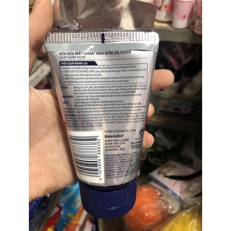 sửa rửa mặt Nivea Men Acne oil Clear Giúp giảm mụn Giúp bay bác nhờn , bụi bẩn từ môi trường bám lên da .