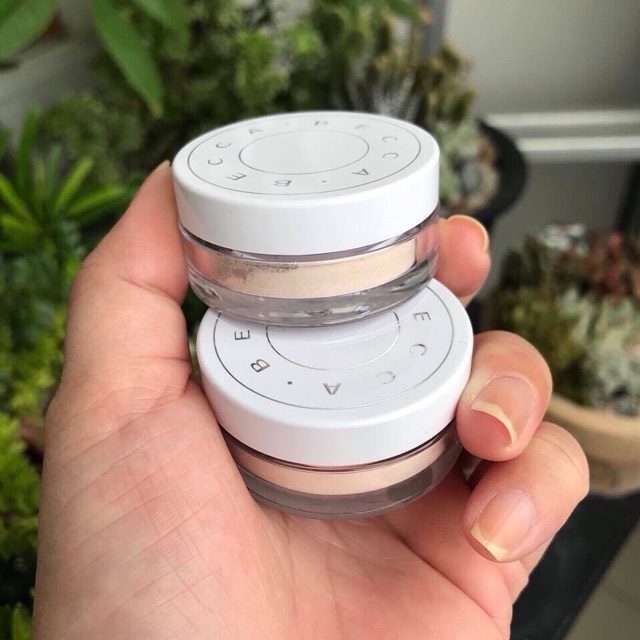 🌸Phấn phủ- Becca Hydra-Mist Set & Refresh Powder 🌸 Hàng mini tách set nobox 1,5g và 2,5g Chị e đã nghe nói đến phấn phủ mà thành phần là nước chưa ạ? ✔️Nhìn thoáng qua cứ tưởng là loose powder bình thường nhưng chỉ cần chạm vào e nó thôi là ce sẽ cảm thấy khác lạ liền , em nó sẽ tự động tan vào da, set lại và ko bị lộ phấn 1 tí gì lun, giúp lớp nền bền màu cả ngày nhưng nhìn như là không có phấn phủ ý ạ . ✔️Khi apply lên da sẽ có cảm giác mát lạnh như thoa nước vậy ý , như kiểu mình đang xịt khoáng trực tiếp lên da luôn đó ce , cực fresh . Bạn nào mà phủ phấn hay bị cakey thì mình cực kỳ nên dùng e này nhá ✔️ Chất phấn cực mịn trong suốt tự nhiên như không đánh phấn mà vẫn để lại finish trên mặt lấp lánh nhè nhẹ. ✔️ Làn da bạn như được cấp nước hồi sinh, tươi tắn rạng rỡ hơn với công thức nước và glycerin chiếm 50% ✔️ Các hạt bột siêu mịn phản chiếu ánh sáng giúp làn da trở nên mịn màng hơn, làm mờ các nếp nhăn và khuyết điểm.