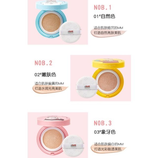 [Phiên Bản Hoạt Hình] Phấn Nước Maycreate Kèm Lõi Thay CN We Bare Bears Cushion Kiềm Dầu, Chống Nước ☘ M'aycreate là hãng mỹ phẩm nội địa quá nổi tiếng vì đáp ứng đủ các tiêu chí ngon bổ rẻ ☘ Cushion M'aycreate kết hợp với We Bare Bears mới ra phiên bản giới hạn, với các tính năng vượt trội như 📌 Cấp ẩm tốt, không nhanh xuống tone 📌 Che phủ tốt 📌 Kiềm dầu, chống trôi nước 📌 Đánh 1 lớp mỏng đã tạo cảm giác căng mướt, đầy sức sống 📌 Bao bì cực cute 😁 🍑 Các nàng tham khảo 1 vài nhận xét của khách nhé (Hình dưới) ☘ Có 3 loại: N01 GẤU TRẮNG vỏ xanh : Tone Trắng Hồng N02 GẤU NÂU vỏ vàng : Tone Tự Nhiên N03 GẤU BÉO vỏ hồng : Tone Trắng Sáng Chống thấm nước rất tiện cho các nàng hay ra mồ hôu hoặc dầu thừa nhiều. Chiết xuất chính từ hoa cúc vàng, dầu hạnh nhân, vitamin E Cam kết hàng chính hãng maycreate #Cushionmaycreate #maycreate #maycreate #bbcream #myphamnoidiatrungquoc #myphamnoidiatrung