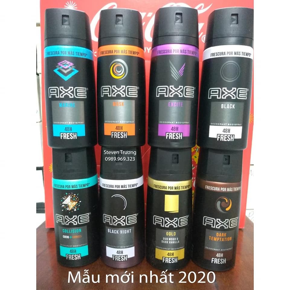 🍀🍀XỊT KHỬ MÙI AXE CHO NAM 150ML -Giá:61k -Từ 10 đến 50 chai:58k √Công dụng: - Xịt khử mùi toàn thân Axe là sản phẩm khử mùi dành cho nam ở dạng chai xịt, có tác dụng ngăn tiết mồ hôi, mang lại cảm giác khô thoáng. - Xịt ngăn mùi toàn thân với mùi hương nam tính quyến rũ. - Mang lại cảm giác sảng khoái, giúp phái mạnh tự tin hơn khi giao tiếp trong công việc và cuộc sống. - Thiết kế chai ấn tượng nam tính, dễ sử dụng. Thích hợp với mọi loại da. Không gây dị ứng.