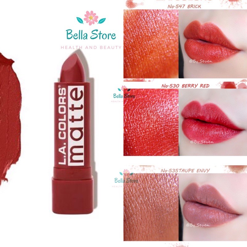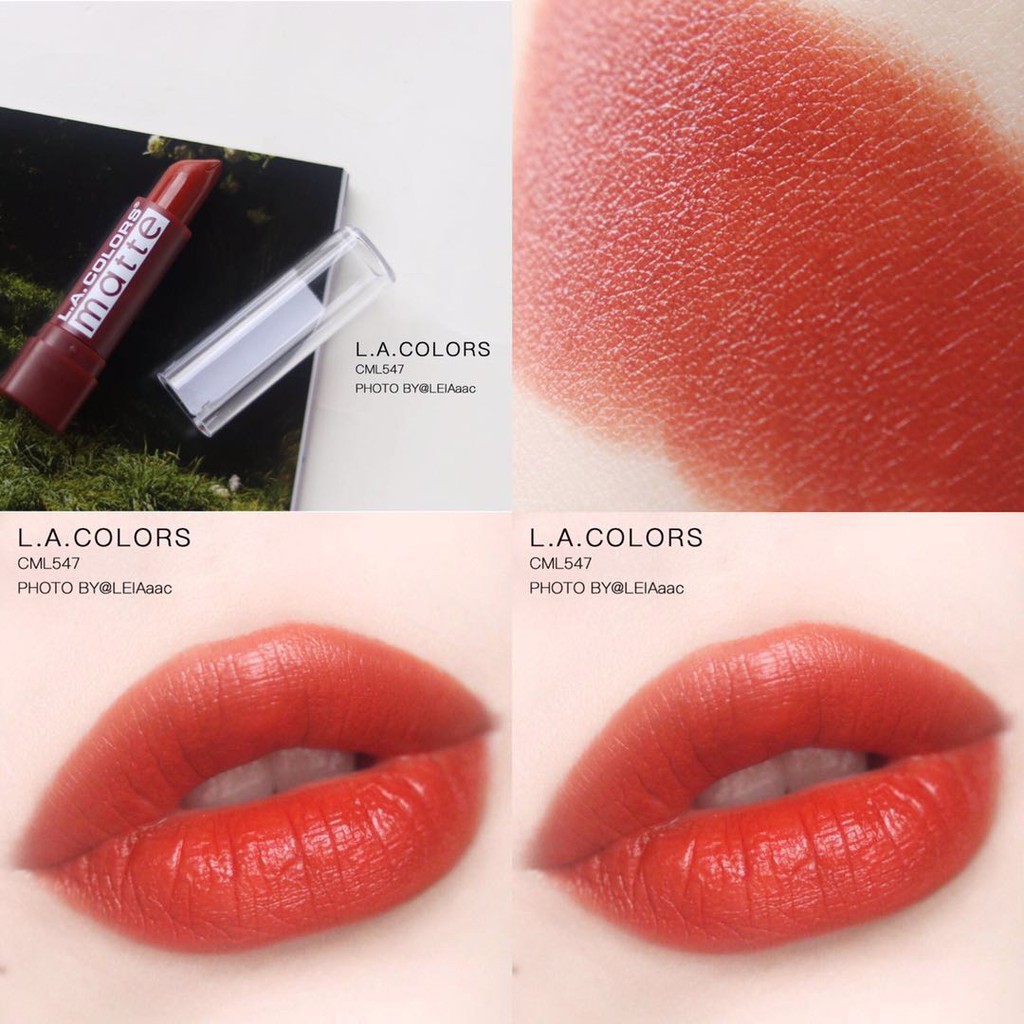 Son LA colors Matte Bricks Với công thức dưỡng ẩm bao gồm Vitamin E & Aloe Vera giúp đôi môi mềm, mịn, mượt. Màu tone cam nhẹ nhàng rất dễ thương.