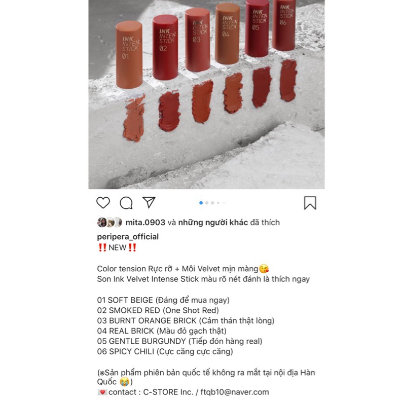 Theo thống kê từ hệ thống của MLEMBEAUTY, sản phẩm Son Peripera Ink Velvet Intense Stick có hơn 2513 lượt xem trong tháng này và có hơn 507 lượt mua toàn thời gian cùng với 218 đánh giá tích cực với điểm đánh giá sao trung bình là ⭐⭐⭐⭐⭐ (5 sao). Bạn hãy yên tâm mua sản phẩm này nhé!