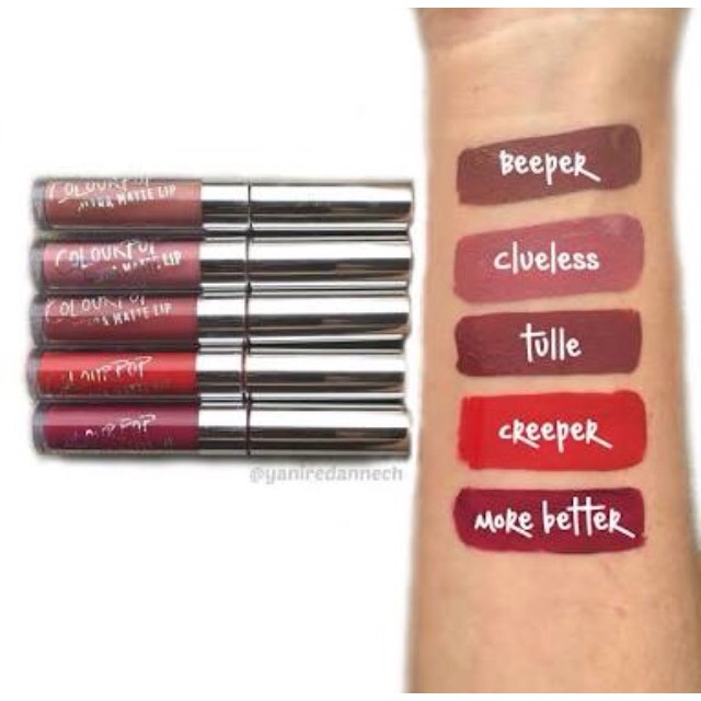 Set son mini Colourpop - Foxy Gồm các màu : Beeper, clueless, tulle, creeper, more better ( xem swatch hình số 2 và 3) Beeper: Ultra Matte Lip; greige rose Clueless: Ultra Matte Lip; dusty mauve Tulle: Ultra Matte Lip; dusty burgundy More Better: Ultra Matte Lip; deep wine Creeper: Ultra Matte Lip; classic blue-red #son #colourpop