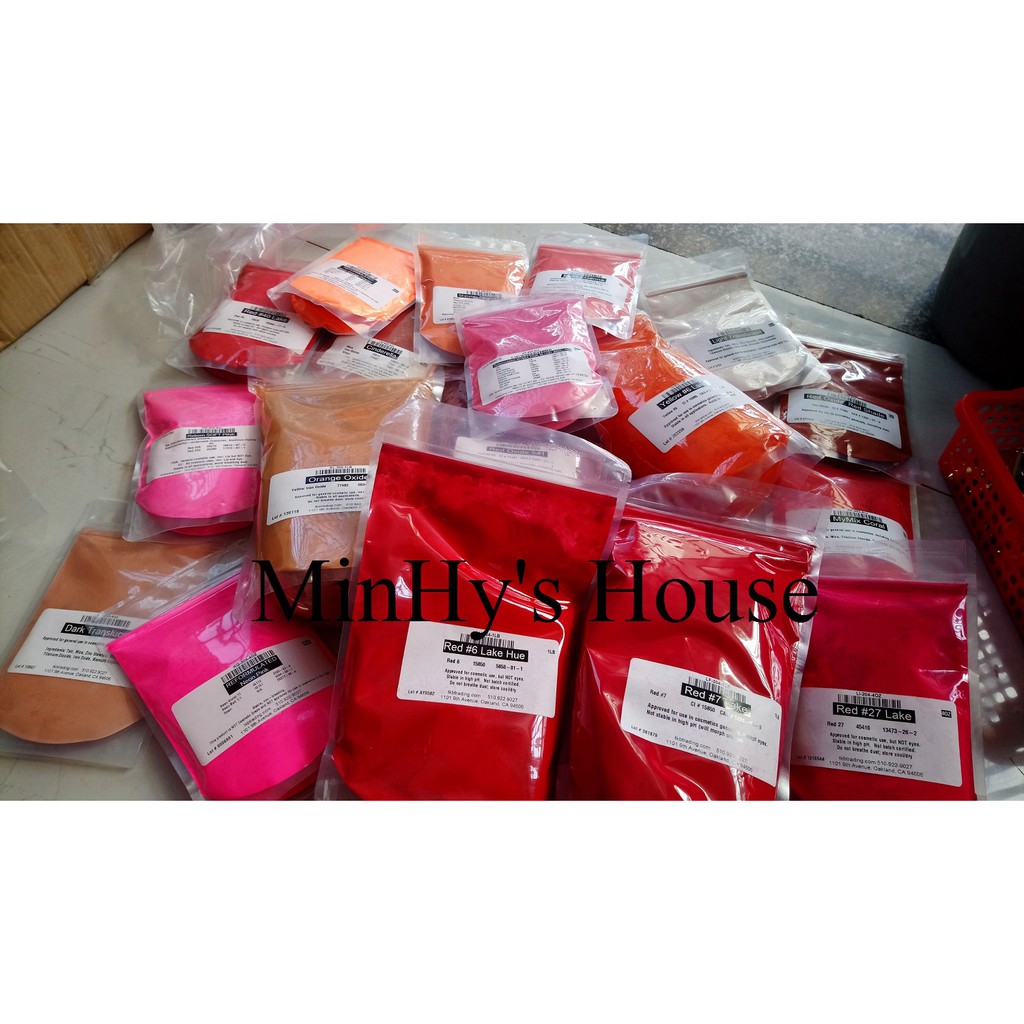 Màu khoáng làm son Mỹ chính hãng có tem nhãn và nguồn gốc xuất xứ Nguyên liệu làm son, mỹ phẩm handmade Màu khoáng làm son Mỹ Cam kết màu mỹ 100% không pha trộn 1. Light Translucent 2. REBORN SOFT PINK 3. ĐỎ THUẦN, ĐỎ TƯƠI 4.RED 27 Alum Lake 5.Cinderella 6.MyMix Coral 7.Neon Orange 8.Dark Translucent 9.MyMix Pink Blush 10.Red Oxide, Red Shade 11.Shimmer TangerinePop 12.MyMix Genna 13.Neon Pink 14.Shimmer RaspberryPop 15.Red 21 Alum Lake 16.D&C Red 6 17.Red 7 CA Lake 18.Yellow 6 Lake 19.Orange Oxide 20.Red 541 #mau my, #maumy