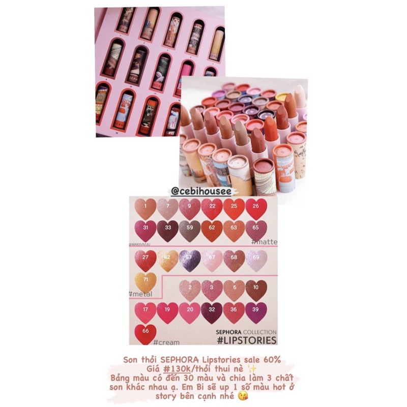 Sản phẩm [ Trả Order + Note Sđt ] Son Sephora Lipstories hiện tại đang được bán online với giá tốt nhất trên thị trường là 133.000đ