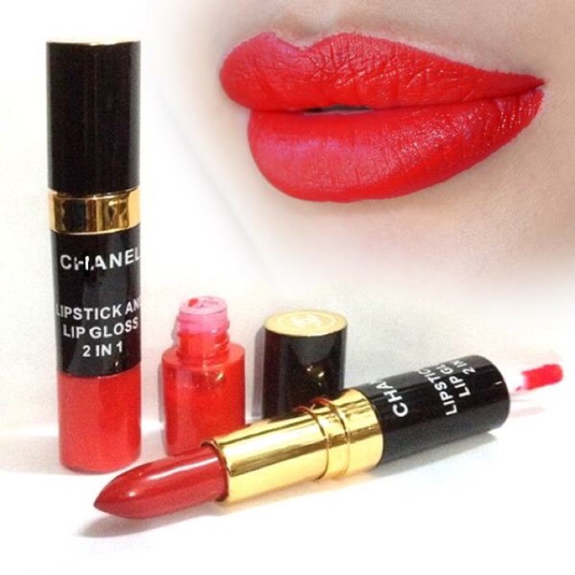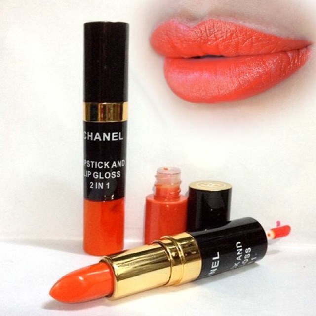 Son môi 2 đầu với thiết kế tiện dụng 1 đầu son và 1 đầu bóng giúp môi căng mọng đầy sức sống Có 3 màu: đỏ tươi, cam tươi và hồng sen