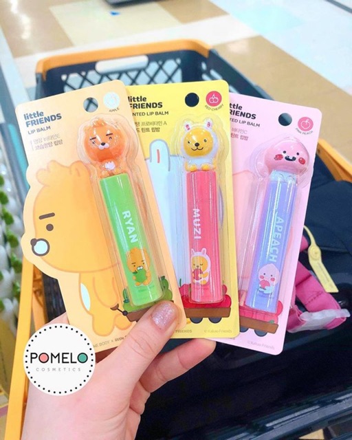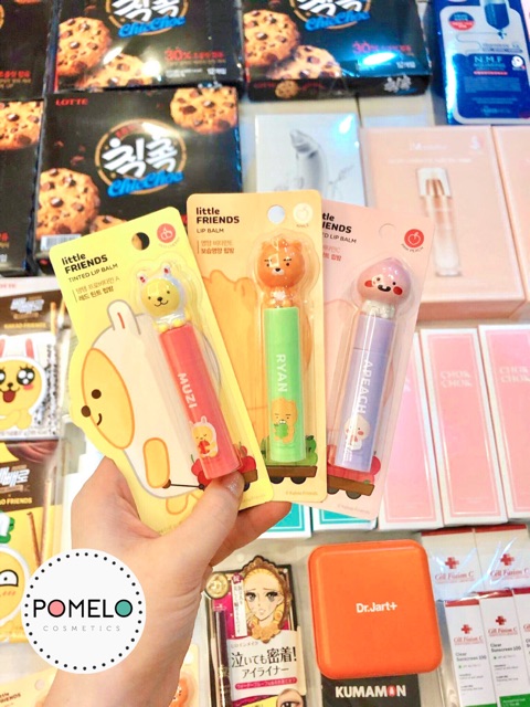 SON DƯỠNG LITTLE FRIENDS TINTED LIP BALM ON THE BODY x LITTLE FRIENDS (KAKAO FRIENDS) . 🔖Son gồm 3 màu với 3 hương khác nhau: Cherry, Táo, Đào. . ➖Đây là dòng son dưỡng của hãng On: The Body kết hợp với Kakao Friends phiên bản mới nhất! . Son trọng lượng 4.8gr, dòng này có nhiều loại gồm dưỡng không màu với dưỡng có màu ứng với các nhân vật Kakao friends. Có chứa thành phần Vitamin C và Vitamin E để da môi khỏe mạnh, căng bóng. . Son có mùi kẹo nhẹ, thơm thơm. Son dưỡng Kakao Friends là nó là tinted lip balm, độ bám màu của nó ngang bằng với son dưỡng thôi, khi re-apply không bị đậm màu, môi cũng không bị nặng, tẩy trang cũng dễ dàng. Chứ một vài loại tinted balm sau khi bôi lại màu bị đậm hơn (giống son gió), lớp son dầy gây khó chịu, tối về tẩy trang mệt ngang ngửa tẩy trang son tint. Thế nên với em son Kakao này, mình bôi lại mỗi hai tiếng thoải mái, tối về môi vẫn căng mọng đủ ẩm.
