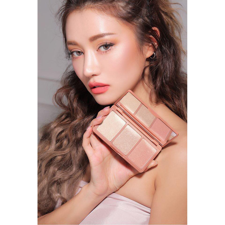 Bảng highlight có ánh nhũ ngọc trai gồm 3 tone : Trắng,hồng,vàng phù hợp với làn da Châu Á và nhiều kiểu makeup khác nhau. - Chất phấn siêu mịn có độ che phủ cao và khả năng bắt sáng hiệu quả tạo cảm giác lung linh cho da. Bên ngoài em nó đẹp gấp trăm lần luôn. - Kết cấu mỏng nhẹ, mềm mịn, có khả năng bắt sáng tốt nhờ thành phần những hạt nhũ ánh kim siêu nhỏ, dễ dàng bám trên da tạo hiệu ứng da căng bóng và sáng khỏe - Các hạt ngọc trai tạo hiệu ứng bắt sáng cực kì tốt làm nổi bật những vùng như vung giữa trán, sống mũi, gò má...kết hợp với tạo khối sẽ giúp khuôn mặt thon gọn hơn.