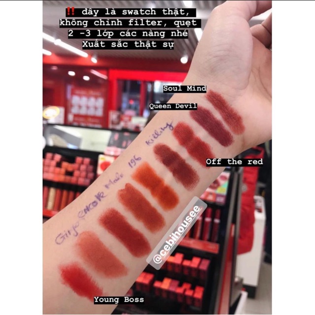 Son lì mới của Dare Rouge Velvet Bi cũng nhận od sale 50% chỉ #235k/thỏi thuiii ạaa giá gốc hơn 500k/thỏi nhe huhu Son nắp nam châm cầm chắc tay k kém gì son Highend đâu nhá. Chất son mướt k quá lì nên k gây khô nói chung là thích lắm ạa 🥰🥰 ____________________________________________________
