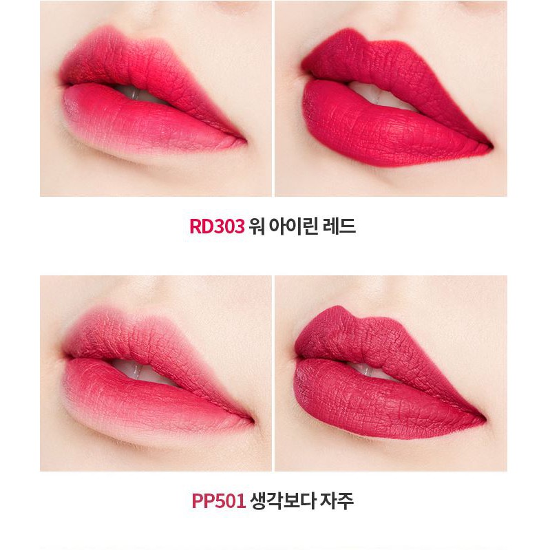 Son Kem Lì Etude House Matte Chic Lip Lacquer có thiết kế vô cùng trẻ trung, năng động nhưng không kém phần tinh tế, nữ tính. Phần thân son trong đục nhưng vẫn nhìn rõ được màu son bên trong giúp các nàng dễ dàng chọn lựa gam màu yêu thích. Phần chổi đánh son được thiết kế nghiêng giúp các bạn vẽ viền môi chính xác và tô son được đều hơn. Chất son thì miễn bàn luận! Vì đây chắc chắn là một sự lựa chọn hoàn hảo dành cho các nàng ghét việc phải dặm lại son sau khi ăn uống nhiều đồ dầu mỡ. Etude House Matte Chic Lip Lacquer có chất son kem mịn siêu lì, lên màu cực chuẩn ngay từ lần quẹt son đầu tiên. Ngoài ra, còn một ưu điểm nổi trội khiến dòng son này được các tín đồ cuồng son yêu thích và săn lùng, đó chính là khả năng bám màu cực cao, cực lâu trôi. Các bạn có thể thoải mái ăn uống, tung tăng dạo chơi cả ngày mà không lo son bị lem hay trôi đi đâu nhé!