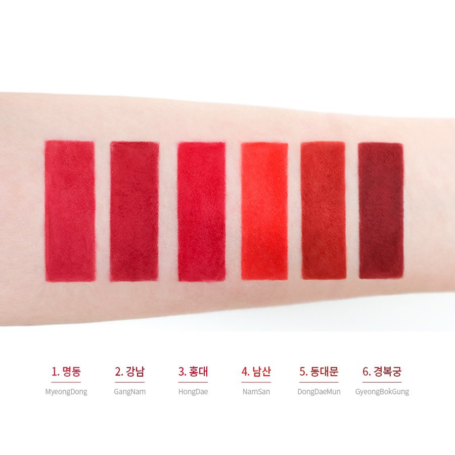 Son GANI Seoul H Lipstick G'ani đưa ra các sản phẩm mang hơi thở của đất nước Hàn Quốc. Dòng son H – Lipstick thể hiện đặc trưng của những vùng đất nổi tiếng của Seoul đồng thời làm nổi bật những thần thái khác nhau. Hãy khám phá chúng trong sản phẩm của G'ani! Là dòng son lì bám cực lâu trôi nhưng không hề khô môi, dễ tán đều trên môi và khá mượt mà. Chất son đều mầu, và mịn nên không bị lộ vệt môi đâu. Bảng màu gồm 6 màu sắc trẻ trung, năng động, siêu cá tính luôn phù hợp cho mọi bạn gái. Ngoài ra giá son rất mềm, phù hợp với túi tiền của đa số mọi người. hiện tại có sẵn đủ 6 màu son với tên gọi cực kì đặc biệt - ứng với từng địa danh tại Hàn: 1. MyeongDong 2. Gang Nam 3. HongDae 4. NamSan 5. DonDaeMun 6. Gyeongbokgun