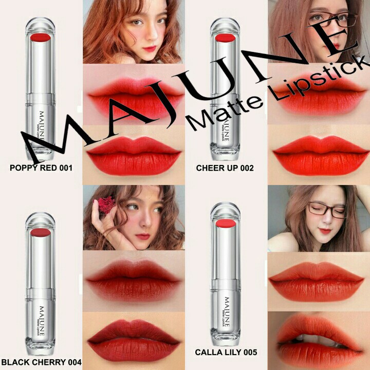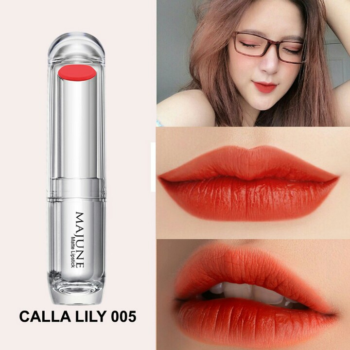 *** THÔNG TIN SẢN PHẨM - Tên son : Majune - Dòng son : Matte Lipstick - Nước : Việt Nam - HSD : 3 năm - SCB: 003546/18/CBMP-HCM - Sản phẩm có đủ hộp, thông tin, CHECK CODE thoải mái. - Shop chỉ bán hàng chính hãng nên bạn an tâm *** THÀNH PHẦN VÀ CÔNG DỤNG - MAJUNE là dòng son lì thiên nhiên, mịn môi, màu sang chảnh. Đây là dòng son tuyệt đối an toàn, được sản xuất tại Việt Nam. - ĐẶC BIỆT Son không chứa chì, không mùi, không gây khô môi, không gây thâm môi. - Dưỡng môi khá hiệu quả - Lưu màu được 8h - Thành phần hoàn toàn từ thảo dược tự nhiên, không hại môi, gây khô tróc hoặc thâm môi như các loại son thông thường. - Chất son mềm mịn, mướt môi. Không gây vón lộ vết vân môi. - Với nhiều màu son đa dạng, giúp bạn dễ dàng lựa chọn cho mình những màu son phù hợp nhất. - Thiết kế sang trọng dễ thương