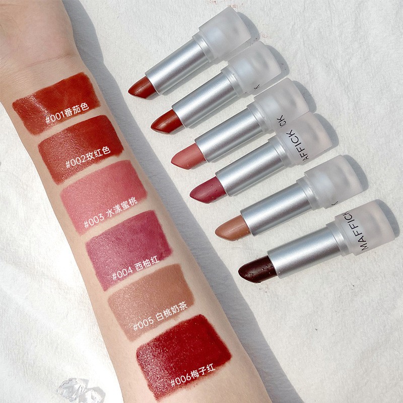 Son Kem Lì MAFFICK,Bề mặt bóng mờ bền màu, không dễ bám bẩn, không làm mất màu Xuất xứ: Trung Quốc Thương Hiệu:MAFFICK Hướng dẫn sử dụng: Đánh 1 lớp ở lòng môi sau đó bặm nhẹ để màu son lên nhẹ nhàng, đánh full môi để son được đậm màu.