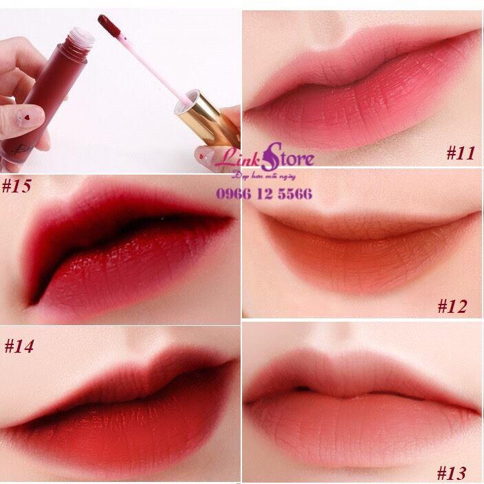 Son kem Last Velvet Lip Tint Version 3 Ver 3 được cải tiến hơn so với các dòng khác từ thiết kế đến chất son. Nắp kim loại vàng, được gia công cẩn thận, có cảm giác sang trọng. Đầu tô son nhỏ nhắn, rất dễ dàng để đi viền môi. Thân son được làm nhám mặt nhưng vẫn thấy được màu son bên trong, thuận tiện trong việc chọn màu son. - Chất son cực mềm mịn với độ bám màu siêu khủng - Kết cấu siêu nhỏ tạo độ che phủ tuyệt đối, hiệu chỉnh màu môi tự nhiên nhất - Sau khi apply lên môi, son nhanh chóng tạo lớp màu lì và mịn như nhung, vô cùng cuốn hút và gợi cảm. - Giữ màu được 5 – 6 tiếng (nếu không ăn uống gì) Đặc biệt là sau khi son bị trôi đi thì vẫn giữ lại lớp nền đều màu chứ không loang lổ Màu son: Dòng này được ra mắt đúng mùa đông nên khỏi phải nói là các màu đều vô cùng hợp để diện trong những ngày se lạnh: #11 CalmBoss: đỏ hồng đất #12 SweetBoss: cam gạch #13 SeriousBoss: hồng cam đất #14 ChillBoss: đỏ thuần #15 YongminBoss: đỏ rượu vang #linkstore #sonmoi