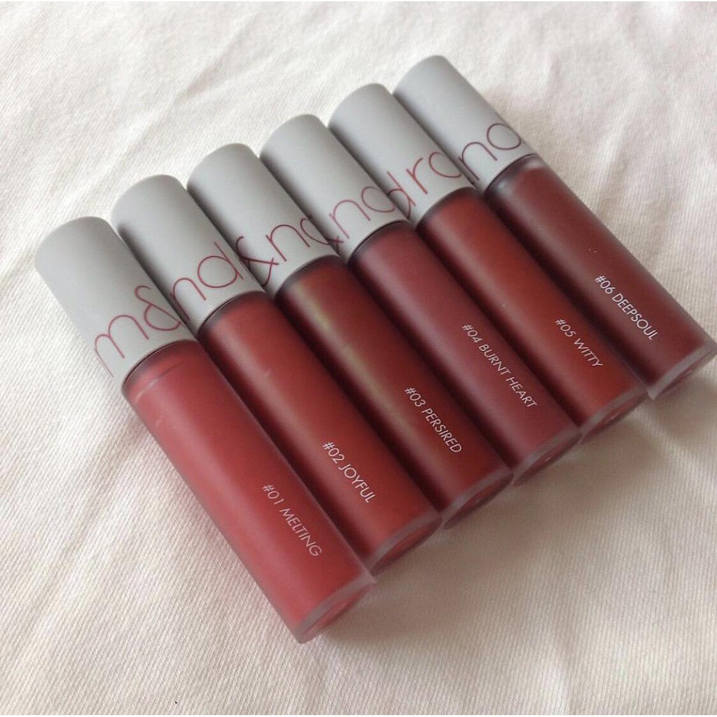 Xuất xứ: Hàn Quốc Thương hiệu: Romand Son Romand Zero Velvet Tint có chất son mỏng nhẹ, velvet tint cực kỳ đáng yêu. Dù là son lỳ nhưng lại đem lại sự mềm mại, êm ái như nhung. Công nghệ tiên tiến giúp các hạt phấn tạo nên màu son sẽ nhỏ hơn 4 lần so với bình thường. Giúp son tiệp hẳn vào môi, bám chắc khó trôi, lên màu chuẩn mịn. Shop về 6 màu: #01 Melting - Hồng nude #02 Joyful - Cánh hồng khô #03 Persired - Đỏ lạnh #04 Burnt Heart - Tím nude #05 Witty - Cam đất #06 Deep Soul - Đỏ nâu.