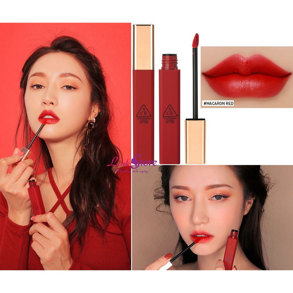 on kem lì 3CE Cloud Lip Tint - 12 tone màu siêu hot! Dung tích: 4ml Son 3CE Cloud Lip Tint mới cứng với 12 màu son là một bản nhạc sắc màu với đa dạng các tông màu hot nhất. Nếu rinh trọn bộ những em son kem lì chuẩn đẹp, lên môi mịn mướt, giữ màu bền lâu này thì tha hồ thay đổi phong cách trong cả tuần. Lúc nào cũng đẹp rạng ngời, không chói lóa mà vẫn rất nổi bật. Những điểm nổi bật của 3CE Cloud Lip Tint: – Thiết kế dạng tuýp, vỏ nhám cầm chắc tay, nắp nhựa ánh vàng sang trọng, lấp lánh. – Son dạng kem với đầu cọ dẹp có đầu nhọn mềm dễ dàng thoa lên môi và tạo đường nét. – Màu son lên môi chuẩn, dù chấm chấm theo kiểu lòng môi cũng lên màu như lúc thoa full môi luôn. – Chất son mềm mượt, nhẹ nhàng tình cảm như tên gọi Cloud. – Son giữ màu trên môi được 4-8 tiếng mà cứ mềm tựa không thoa son, thậm chứ có một sự dưỡng mềm môi nhẹ nhẹ nữa chứ. – Đặc biệt, son kem lì và bám màu lâu nhưng không bị lộ vân môi xấu xí mà môi trong mướt mịn cực kì luôn #Beige Avenue - Cam nâu #Needful - Đỏ gạch #Active Lady - Hồng cam nude #Peach Tease - Cam san hô #Live A Little - Đỏ đất #Cutesicle - Hồng nude #Blossom Day - Hồng đào #Pinkalicious - Hồng trầm #Carrot Pink - Hồng san hô #Fairy Cake - Hồng đất trầm #Immanence - Đỏ trầm, là màu đậm nhất #Macaron Red - Đỏ hồng Hướng dẫn sử dụng: – Son có độ bám cao, chất son cực mềm mại vì vậy bạn có thể thoải mái thoa son theo nhiều kiểu khác nhau, có thể đánh lòng môi hoặc đánh full môi. – Thích hợp với nhiều kiểu trang điểm của mỗi bạn. – Trước khi sử dụng son kem lì 3CE Cloud Lip Tint, nhớ dùng son dưỡng ẩm để môi luôn được mềm mịn và lên tone chuẩn màu. #3ce #clouldliptint #son3ce #sonkem #son #newsunvn