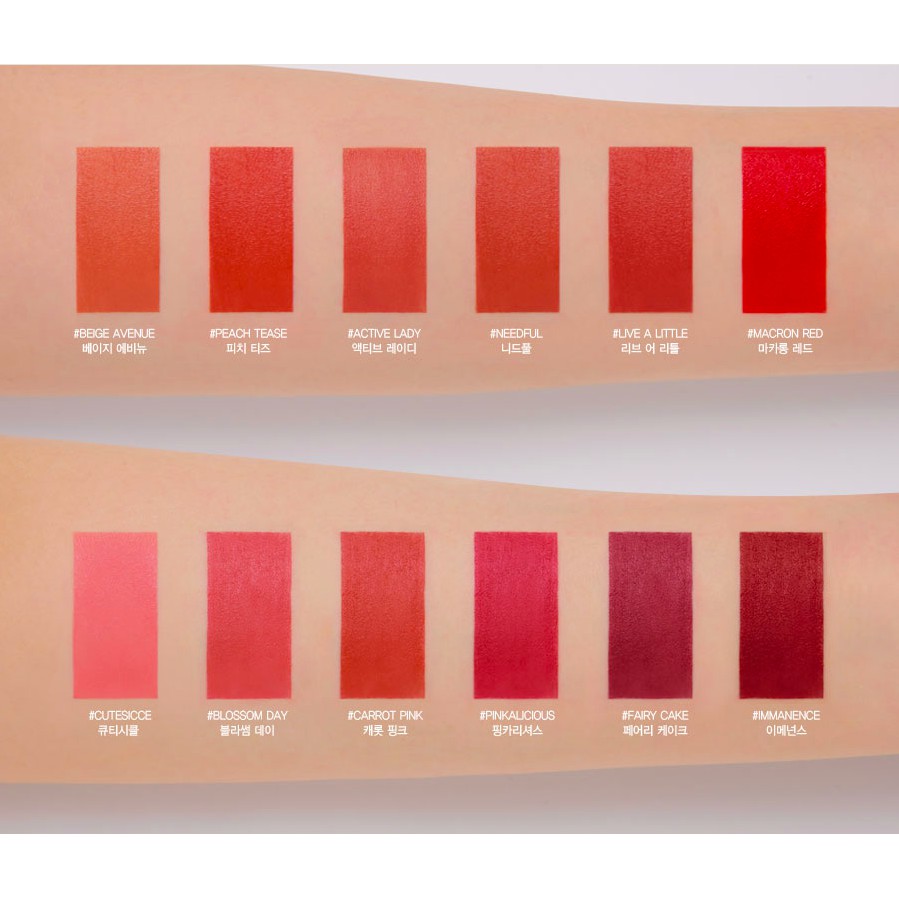 🔥 BST MỚI NHẤT 𝟑𝐂𝐄 Cloud Lip Tint 2019🔥 ⭐️ Thiết kế mới với thân son vuông bằng nhựa nhám, màu trùng với màu son bên trong, nắp đậy màu vàng gold sáng bóng cực kì sang chảnh 🌥 Sở hữu chất son nhẹ bẫng như mây, đặc biệt là rất mỏng mịn đúng như tên gọi và hoàn toàn không gây khô môi 💄 Lên màu cực chuẩn và che phủ môi hoàn toàn chỉ sau một lần quệt ⏰ Giữ màu trên môi được 4 - 8 tiếng, có thể ăn uống thoải mái mà son vẫn để lại màu dạng stain cực xinh BẢNG MÀU HOT NHẤT HIỆN TẠI NHÉ CẢ NHÀ ƠI! ‼️Bảng son gồm 12 màu : 1. Peach Tease: Cam san hô 2. Needful: đỏ gạch 3. Macaron Red: Đỏ hồng 4. Live A Little: Đỏ đất 5. Fairy Cake: Hồng đất trầm 6. Cutesicle: Hồng nude 7. Carrot Pink: Hồng san hô 8. Blossom Day: Hồng đào 9. Beige Avenue: Cam nâu 10. Active Lady : hồng cam nude 11. Immanence: Đỏ trầm 12. Pinkalicious: Hồng trầm