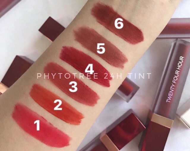 MÙNG 1 ĐẦU THÁNG MUA SON CHO ĐỎ CẢ THÁNG NÀO CÁC CHỊ EM ƠI ❤️ #Hàng_có_sẵn Siêu phẩm Son 24H Phytotree Twentyfour Hour đang làm mưa làm bão đây Test Độ Bám Son Phytotree giữ màu 24 tiếng 💋 Dự sẽ là cơn bão hot hit không kém cạnh Black Rouge Son lên rõ ngay một lần thoa, mềm mượt, không gây khô, lộ rãnh môi lại lì mịn như nhung 💋 Đặc biệt độ bám giữ màu đến tận #24h Ưng từ màu son đến chất son, hứa hẹn sẽ vừa lòng tất cả các bạn nữ 😝 BẢNG MÀU siêu đẹp, full 6 màu son trendy hợp với mọi tone da : 💋 01 : Đỏ hồng dâu 💋 02 : Đỏ cam gạch 💋 03 : Đỏ lạnh 💋 04 : Đỏ gạch 💋 05 : Đỏ nâu 💋 06 : Đỏ cam cháy