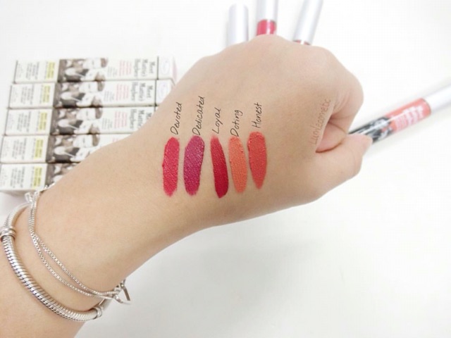 ✔️The balm meet matte hughe Đợt vừa rồi săn 50% vẫn còn vài em xinh yêu đây ^^ Còn: - Devoted - Loyal - Dedicated Honest và Doting trên hình SOLD OUT rồi nha Giá cho các em ý cực kỳ hạt dẻ ạ: 300k/em Em này sẽ ko làm mọi người thất vọng đâu, màu son lên chuẩn và đẹp, ko hề khô môi tẹo nào, thêm vào mùi chocolate mint cực thơm, ngửi vào chỉ muốn cắn 1 cái thôi ☺️☺️ #lumlecosmetics #lumleinstore #thebalmmeetmattehughes #lumleswatches