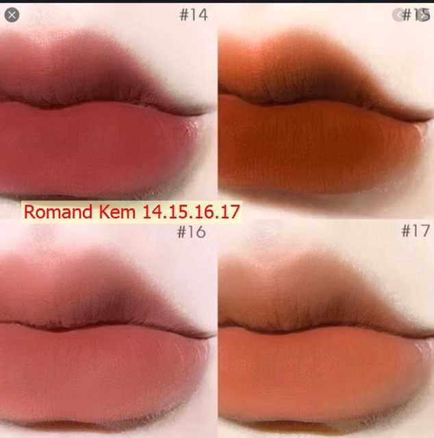 Tên sản phẩm: Son kem lì Romand Zero Velvet Tint Hãng sản xuất: Romand Xuất xứ: Hàn Quốc Công dụng sản phẩm: Chất son mềm mượt như bông, lên màu cực chuẩn, không bị bóng hay lem môi. Chứa các chất dưỡng ẩm giữ đôi môi mịn đẹp. Có độ bám cao và bền màu trong suốt nhiều giờ liền. Sở hữu bảng màu sắc cuốn hút, tươi trẻ và thích hợp với mọi loại da. Thành phần sản phẩm: Chiết xuất từ các thành phần tự nhiên và bổ sung chất dưỡng ẩm