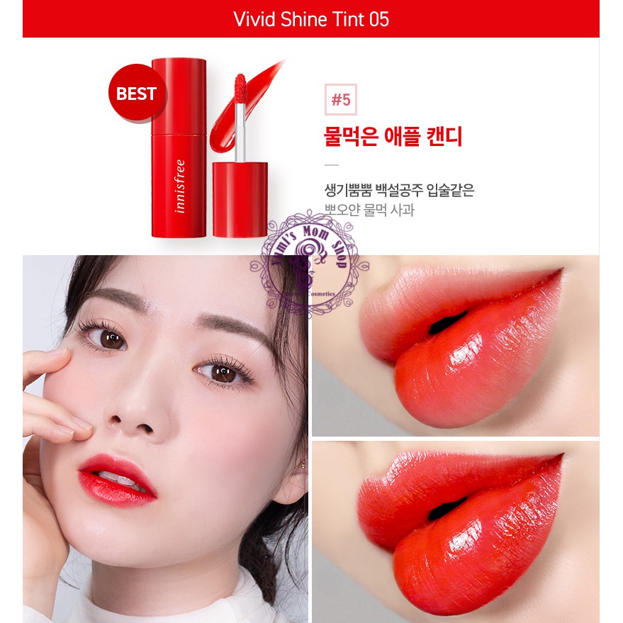 - Kích thước son chỉ dài bằng ngón tay trỏ, thân son mập mạp đáng yêu. Vỏ son bằng nhựa bóng, màu son và màu vỏ đồng bộ. - Chất son của Vivid Shine Tint có texture mỏng nhẹ nhưng vẫn có độ sệt vừa phải. Vì là son tint nên độ bóng của son là điều khó tránh khỏi. Nàng nào không thích son bóng thì nên cân nhắc khi mua nhé. - Chất son dễ dàng tán nhẹ trên môi, đều màu. - Độ bám màu lâu, dù ăn uống thả phanh thì vẫn còn một lớp son nhẹ nhàng bám lại trên môi, cực kì tự nhiên. - 5 màu son đều thuộc tông ấm, màu son rạng rỡ dành cho mùa hè. #yumimomshop #myphamhan #Son #VividShineTint