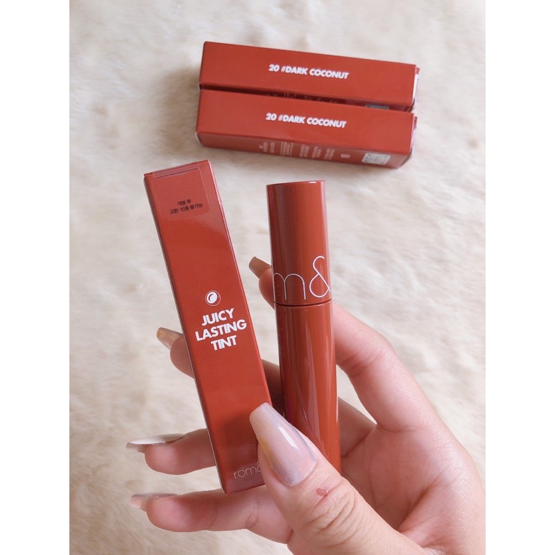 ROMAND JUICY LASTING TINT MÀU 17 - Màu son đầy cá tính và dỗi hờn cho cô gái 😈😈 Để phù hợp với không khí vui tươi mùa hè, hãng đã thay đổi thiết kế bên ngoài của Romand Juicy Lasting Tint. Vỏ giấy trùng màu với son bên trong, có dòng chữ Juicy Lasting Tint và một loại trái cây đại diện cho màu son đó. Thân son với thiết kế vô cùng quen thuộc, dạng trụ tròn có màu sắc trùng với màu son bên trong. Thân son còn bao gồm tên hãng và tên son để các nàng tiện tìm son. Cọ son cũng được thay đổi, trở nên dài và vát nhẹ phần đầu giống Black Rouge Mousse Blending giúp viền môi dễ dàng. Son có trọng lượng 5,5g cầm khá nặng tay và tiết kiệm. Chất son bóng bẩy, dù ăn uống vẫn lâu trôi cực kỳ, thích hợp với những cô gái đi ăn mà vẫn muốn xinh lắm đấy!