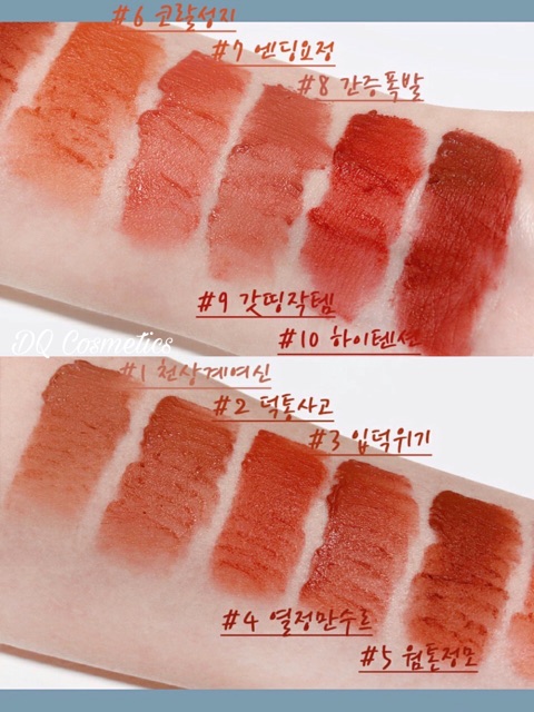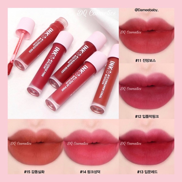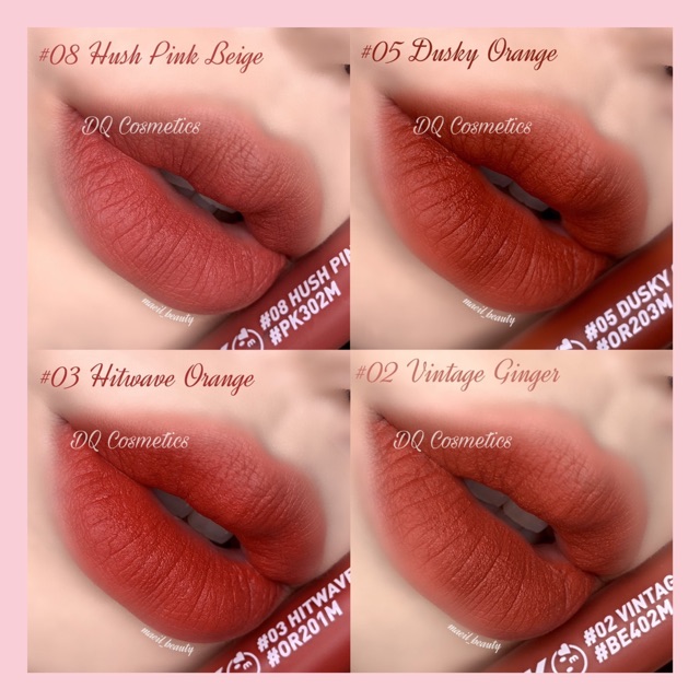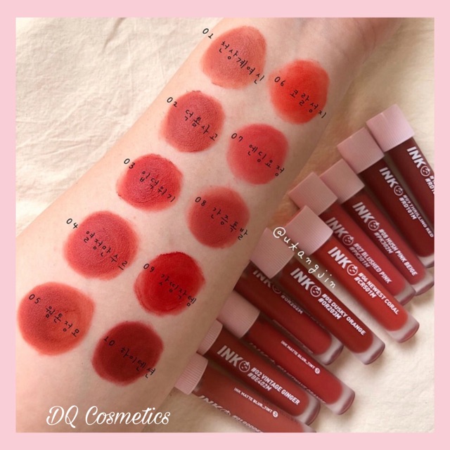 🌸Son Ink Matte Blur Tint Siêu mượt mà không làm lộ vân môi nè chị em ơiiiii ❤️ Chỉ #85K / thỏi. Rẻ hơn bèo kkk ✨ Chất son có chứa thành phần dưỡng nên khi dùng không khiến môi bị khô. Tuy nhiên cũng vì chất son quá mỏng nhẹ nên khả năng che phủ các khuyết điểm môi ✨ Điểm cộng lớn nhất chính là em ấy không còn hiện tượng bột trên môi. Thay vào đó chất son mềm mịn hơn và bám màu cực tốt ạ. Khi nàng apply lên môi tạo cảm giác nhẹ nhàng như bông đó à nha. ✨ Độ bám màu được đánh giá cực cao 🌸 Bảng son sale : • 01 GODDESS BEIGE : cam nude • 02 VINTAGE GINGER : cam đất • 03 HITWAVE OẢNGE : cam đỏ tươi • 04 PASSION APPLE : cam thiên đỏ • 05 DUSKY OẢNGE : cam nâu ánh đỏ • 06 NEWEST CORAL : cam san hô • 07 BLUSHED PINK : hồng đào • 08 HUSH PINK BEIGE : hồng nude ( Hết sale ) • 09 THRILLING RED : đỏ tươi • 10 TRUE RED BRICK : đỏ trầm pha nâu • 11 DAMASK RED: đỏ hồng • 12 CERISE PINK: hồng tím • 13 MAROON BERRY: hồng tím đất • 14 FAN OF PINK: hồng cánh sen • 15 CINNAMON CORAL: cam nâu ( Hết sale )