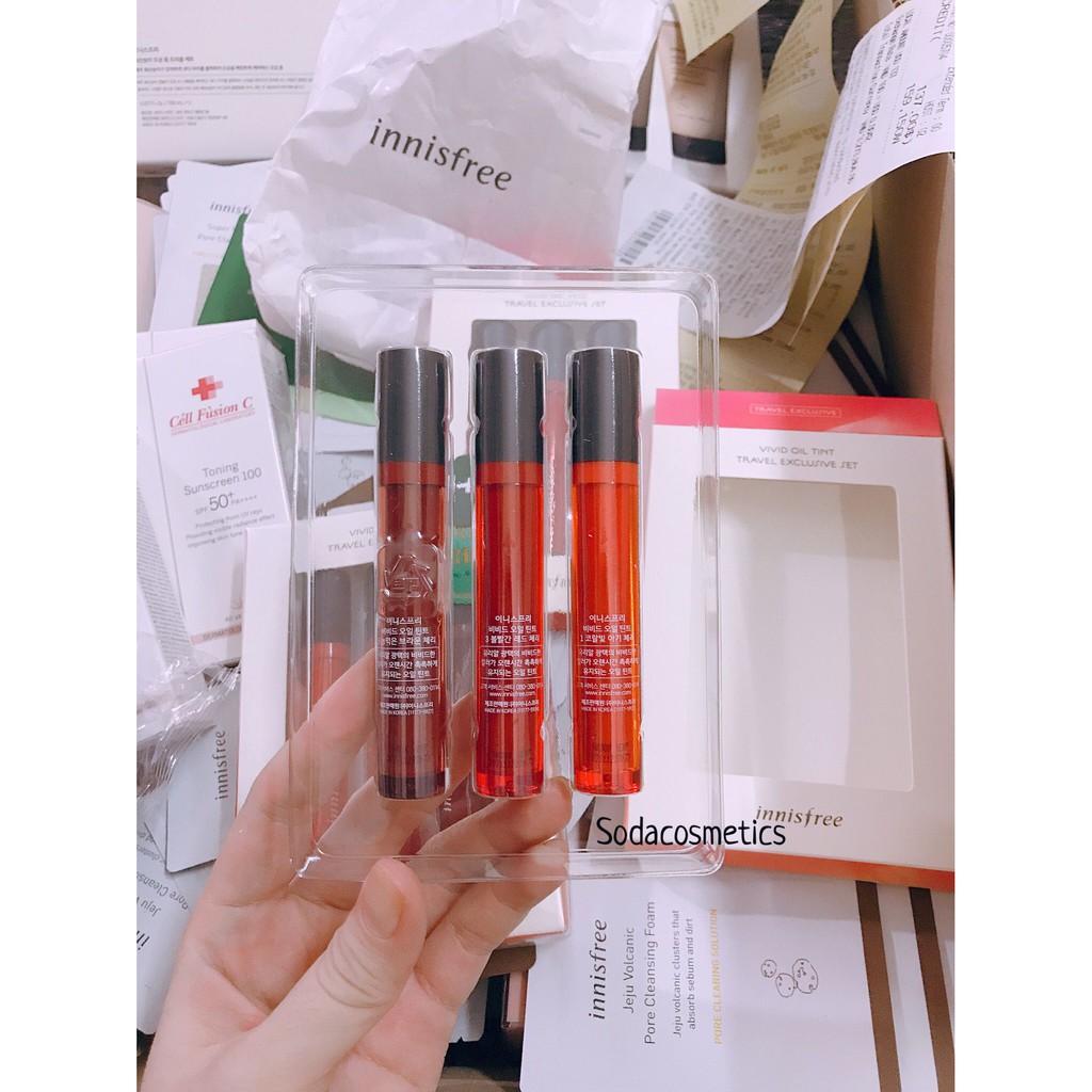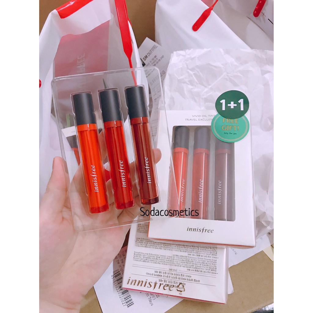 Lần về hàng mới nhất trong tháng:) Innisfree oil tint mình mua tách set nên giá siuu hạt dẻ luông nha😘 Lưu ý: Hàng tách set sẽ ko có lớp seal bên ngoài còn lại giống nhau hết ạ. Bạn nào mua về xài thì vậy cho tiết kiệm nè. Đường nào mua về cũng tháo lớp seal ra xài thoyy. Tách set có 3 màu:#1,#3,#5 🍑Only: #130k/1c thuii ---- Mẫu mới nha nắp trắng là bản năm ngoái năm nay hãng thay thành màu đen. Lưu ý: Có 2 seal mình có chụp rõ Tem seal đen Date 2022 Tem seal trắng Date 2021. Toàn date mới thôi à mỗi năm thì hãng thường xuyên update mấy cái tem seal lắm😘😘Mình luôn chụp rõ để khách nhận hàng khỏi thắc mắc nè. 🌼Giá mua sale: #145k/cây ——— Packing xinh khủng khiếp. Màu này mà đánh lên môi nhất là những bữa tiệc tối đánh lên nhìn thu hút lắm luôn. - Bé này là là dòng son Tint mới nhất từ Innisfree chứa 5 loại tinh dầu giúp dưỡng ẩm lâu dài trên môi, tạo độ bóng nhẹ giúp che phủ đôi môi khô ráp xỉn màu, thay vào đó là đôi môi căng mọng, tươi mới. Son rất phù hợp với các cô gái công sở làm việc trong môi trường máy lạnh, có đôi môi dễ khô nứt. - Chất son không quá lỏng cũng không quá đặc khiến cho việc tán son vô cùng dễ dàng, lớp son lên môi sẽ bóng nhẹ, bạn có thể chồng nhiều lớp để lên màu rực rỡ và bóng hơn. - Ngoài ra, điểm ái ngại của các bạn gái khi sử dụng các loại son bóng thường có độ bền màu không quá cao. Tuy nhiên Innisfree Vivid Oil Tint có khả năng giữ màu trong suốt thời gian dài. Khi ăn uống, độ bóng trên son sẽ giảm bớt nhưng vẫn lưu màu lại tốt trên môi. #innisfreevividoiltint