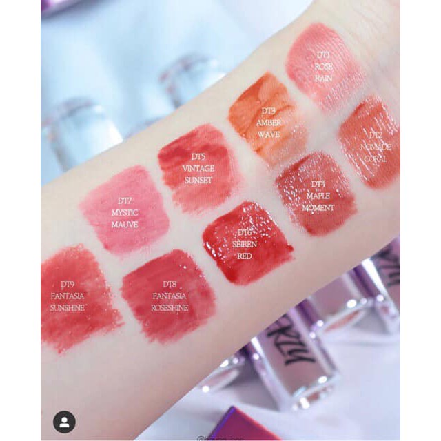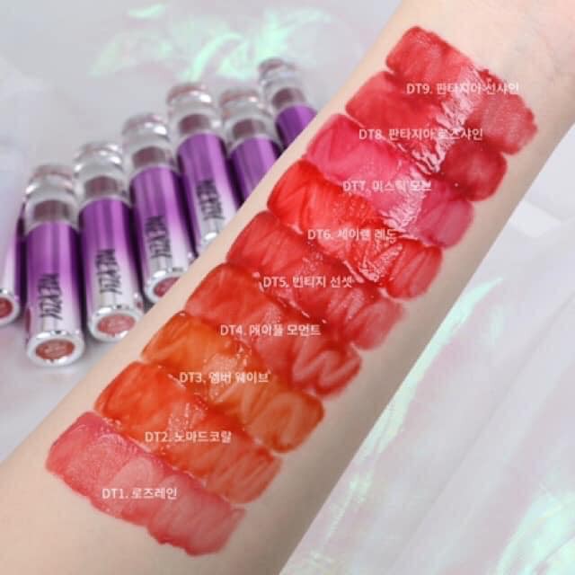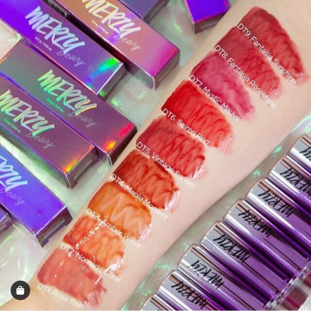 Son Tint Bóng Siêu Lì Merzy Aurora Dewy Tint. ✈️Xuất xứ: Hàn Quốc 📍Trọng lượng: 5.5g 💰Giá: #180k/sp 🌸 Khoác trên mình lớp vỏ tím mộng mơ - sự quay lại lần này Merzy đã đem siêu phẩm Son Kem Lì Bóng Merzy Aurora Dewy Tint - nhất định sẽ đốn tim các bạn gái từ cái nhìn đầu tiên. 🌸 Tựa như lớp nước trong veo căng mọng, tựa như ánh cầu vồng lấp lánh bao bọc lấy đôi môi. 🌸 Chất son chứa 30% tinh chất dưỡng ẩm giúp làm mềm môi cho đôi môi căng mọng và mang đến một vẻ đẹp ẩm mượt như đang ngậm nước. 🌸 Sự kết hợp giữa lớp base pha lê trong suốt và sắc tố màu công nghệ tiên tiến giúp cho đôi môi trở nên hoàn hảo hơn. 🌸 Công nghệ Aqua Moisture Complex cung cấp độ ẩm cho đôi môi cùng với những thành phần nổi bật như HA, dầu Jojoba, olive cùng hạnh nhân tạo một cảm giác mịn mượt cho đôi môi của bạn. 🌸 Với 9 tông màu đầy sự trendy, sự quay trở lại của Merzy khẳng định sẽ chinh phục được tất cả cô gái. 🍁DT1. Rose Rain: Sắc hồng 🍁DT2. Nomade Coral: sắc san hô 🍁DT3. Amber Wave: Sắc cam 🍁DT4. Maple Moment: Sắc đỏ pha nâu chuẩn 🍁DT5. Vintage Sunset: Sắc đỏ ánh coral 🍁DT6. Seiren Red: Sắc đỏ thẫm 🍁DT7. Mystic Mauve: Sắc hồng mận 🍁DT8. Fantasia Roseshine: Sắc đỏ hồng 🍁DT9. Fantasia Sunshine: sắc cam nâu cháy