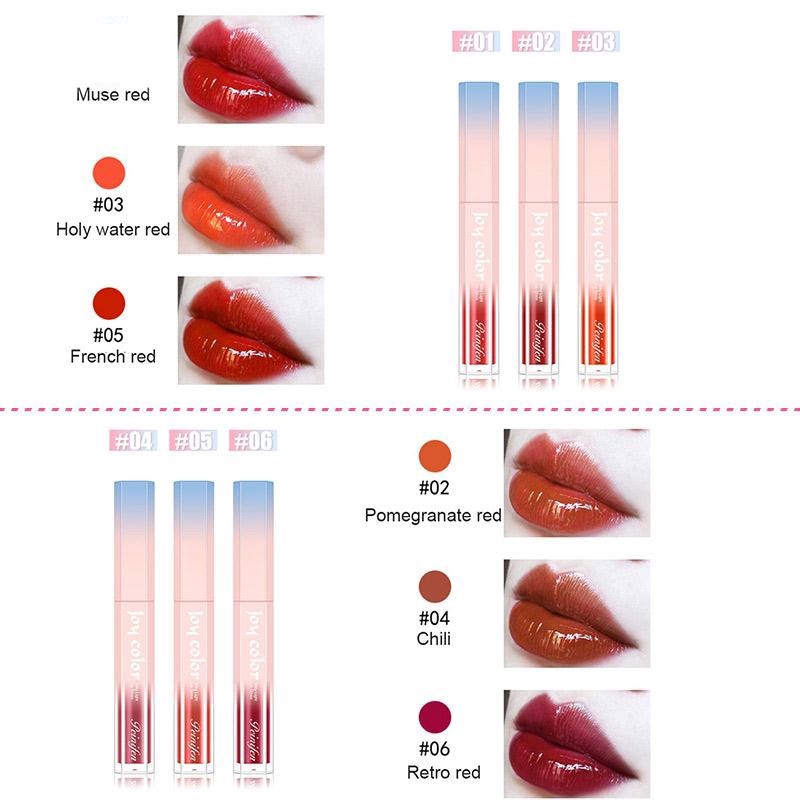 Mô tả sản phẩm Son Tint Joy Color siêu lì Thương hiệu : PEINIFEN PEINIFEN là hãng mỹ phẩm nội địa Trung với phong cách rất Âu Mỹ, các sản phẩm có bao bì rất sang chảnh gợi nhớ đến Fenty Beauty và chất lượng rất ổn nhưng mức giá cực kì phải chăng. Một trong những sản phẩm nổi tiếng của hãng chính là son. Dòng son kem lì với bộ sưu tập màu cực kì " Tây" nhưng vẫn cực hợp trên da Châu Á. Chất son rất lì, khá nhẹ môi, lên màu khá chuẩn chỉ sau 1 lớp.