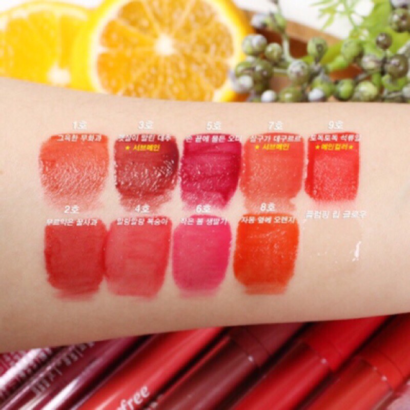 NEW ARRIVAL 2020 💁♀️ 🍑 SON TINT NƯỚC HOA QUẢ 𝙄𝙉𝙉𝙄𝙎𝙁𝙍𝙀𝙀 𝙁𝙍𝙐𝙄𝙏𝙔 𝙎𝙌𝙐𝙀𝙀𝙕𝙀 𝙏𝙄𝙉𝙏 🍑 . 🍓Bảng màu bao gồm 9 tông son có màu và 1 tông son bóng không màu lấp lánh ( #0 ) , các màu son tô lên môi đều nhẹ nhàng như nước hoa quả không bị choé, bao lấy môi và giữ nguyên vẹn suốt cả ngày dài . 🍓Thiết kế thỏi son dáng trụ thon dài, thân son trong suốt cùng với nắp son đồng bộ màu sắc với màu son bên trong, tất cả sự đơn giản này tạo nên cảm giác trong sáng thu hút cho thỏi Innisfree Fruity Squeeze Tint này . 🍓Chất son tint bóng ánh nước chiết xuất Shine Coating System bao gồm 10 loại dầu dưỡng thành phần thực vật thiên nhiên, hơn 30% hàm lượng nước, các thành phần hệ mentol mang lại đôi môi luôn căng mọng ngọt ngào và siêu đầy đặn . 🍓 Bé son này sẽ là các mùi trái cây pha trộn nên sẽ có mùi kiểu quả thanh yên ( citrus ) Mùi này thuộc dạng cam chanh nên khách cân nhắc nhé !