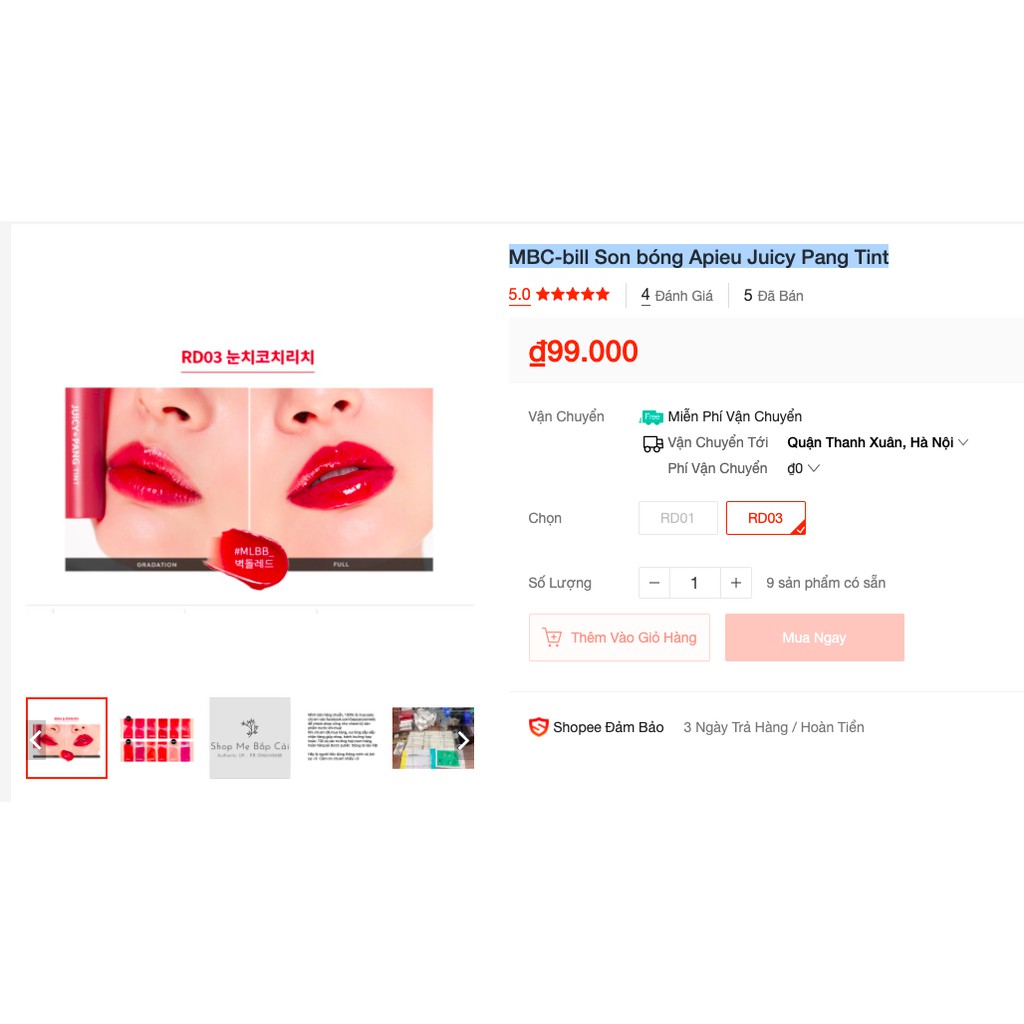 Sản phẩm Mbc Son Bóng Apieu Juicy Pang Tint hiện đang được bán tại Shopee.