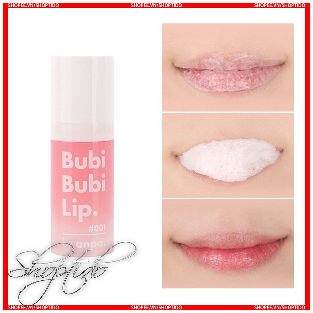 Tẩy Da Chết Sủi Bọt Thải Độc Môi Bubi Bubi Lip Thương hiệu: Unpa Xuất xứ: Hàn Quốc Giúp đôi môi mịn mang, thải độc do đánh son quá nhiều và quan trọng hơn hết là giúp môi hồng hào, không còn lo thâm môi nữa nhé các nàng. Vấn đề nan giải của nhiều cô nàng nay đã được giải quyết gọn ghẽ chỉ với chưa đến 10 phút sử dụng sản phẩm thú vị này. Sản phẩm tẩy da chết môi độc đáo này mang tên Bubi Bubi Lip được sản xuất bởi Unpa – một thương hiệu chuyên phân phối những sản phẩm làm đẹp được giới trẻ Hàn tin tưởng. Ưu điểm của tẩy tế bào chết môi Buni Bubi Lip: - Lọ tẩy tế bào chết thiết kế hình trụ nhỏ gọn với màu hồng dễ thương chắc chắn sẽ làm hài lòng ngay cả những cô nàng khó tính nhất. - Thiết kế dạng vòi nhấn tiện lợi, bạn chỉ cần nhần vòi là chất gel bên trong chảy ra. - Bubi Bubi Lip giúp loại bỏ tình trạng môi bong tróc, giúp bạn đánh son mướt hơn, chuẩn màu hơn. - Sau khi thoa lên môi, chất gel sẽ sủi bọt mịn li ti. Lúc này, các hoạt chất trong sản phẩm đang giải phóng oxy vào sâu trong da để làm lấy đi các tế bào da chết. Khác với các sản phẩm tẩy tế bào chết thông thường, Bubi Bubi Lip sử dụng hoạt chất tẩy da chết hóa học AHA trong đu đủ tự nhiên để làm mềm môi, giúp các vẩy da chết bong ra dễ dàng, do đó không gây tổn thương cho làn da môi mỏng manh. - Đồng thời, chiết xuất từ bưởi với nhiều vitamin C giúp môi trở nên hồng hào, căng mọng. HƯỚNG DẪN SỬ DỤNG: - Nhân vòi lấy 1 lượng vừa đủ ra ngón tay và nhẹ nhàng thoa đều lên môi. - Sau khi bọt nổi lên, bạn chờ khoảng từ 3 – 5 phút rồi dùng đầu ngón tay di nhẹ trên môi để lấy đi các vảy da chết. - Dùng nước hoặc khăn ướt làm sạch môi. - Thoa son hoặc kem dưỡng. #BUBILIP #BUIBIMOI #BUBIBUBI