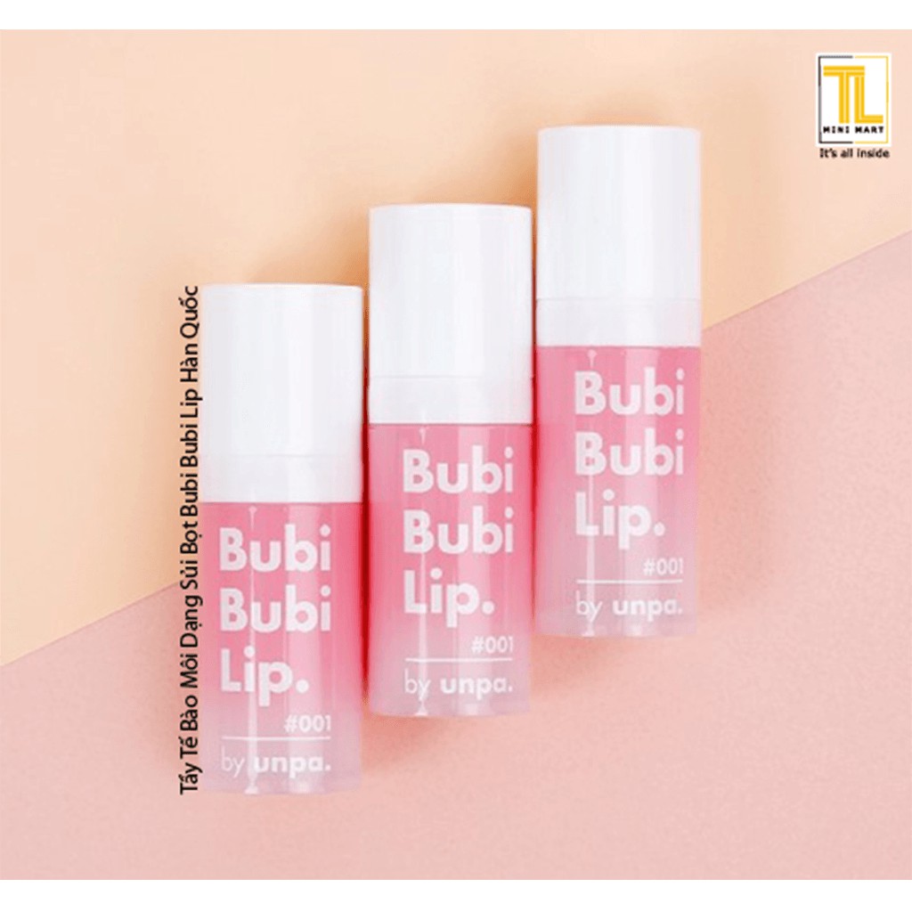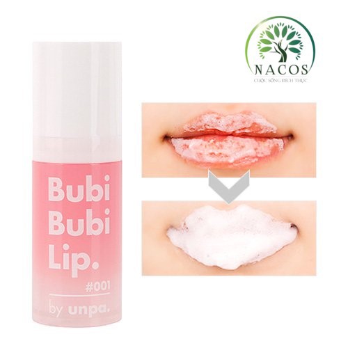 Tẩy Tế Bào Chết Môi Sủi Bọt Bubi Bubi Lip Xuất xứ: Hàn Quốc Thành phần: chiết xuất cây phỉ, đu đủ, quả đào, bưởi, rau sam, chanh đào, AHA, nước khoáng,… Đối với các nàng yêu làm đẹp, son môi chính là người bạn không thể thiếu. Thế nhưng, một vấn đề nhỏ nhưng lại khiến không ít cô nàng phải đau đầu mỗi khi tô son là những vẩy da chết bong tróc, chúng làm lớp son lên màu không mượt, không mịn như tưởng tượng. Hiểu được tâm tư của phái đẹp, hãng UNPA đã cho ra đời gel tẩy da chết môi dạng sủi bọt Bubi Bubi Lip, giải pháp hoàn hảo để giải quyết các vấn đề về tẩy trang, tẩy chất dơ, chất sừng và tế bào chết cho môi mang lại một đôi môi mềm mịn, hồng hào tự nhiên, cải thiện đáng kể tình trạng thâm môi, xỉn màu. Gel sủi UNPA Bubi Bubi Lip được thiết kế dưới lớp chai nhựa dạng xịt màu hồng cực yêu. Chất gel trắng đục, nhẹ nhàng, khi apply lên môi sẽ tạo thành lớp bọt khí giúp lấy đi lớp sừng cằn cỗi, ngay lập tức bạn sẽ cảm nhận ngay môi trở nên mềm mịn và căng mọng rõ rệt. Sản phẩm nhẹ dịu, có thể sử dụng mỗi ngày. Và đừng quên dùng ngay sản phẩm dưỡng môi sau đó nhé, sau khi đã loại bỏ những vảy da chết, môi sẽ hấp thụ dễ dàng hơn các dưỡng chất 1 cách hiệu quả nhất !