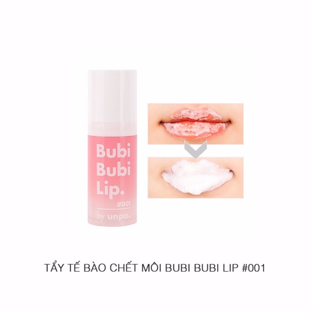 Gel Sủi Môi Unpa Bubi Bubi Lip Cực Lành tính, Làm Bong Tróc Da Chết, Siêu Mềm g - Dung tích: 12 ml - Hãng sản xuất: unpa. 1. Dành cho mọi loại da 2. Gel sủi làm bong da chết, dưỡng môi mềm mịn, hồng hào 3. Cây Phỉ + Đu Đủ giúp tẩy trang, loại bỏ chất sừng dư thừa 4. Chiết xuất Đào dưỡng ẩm, chống oxy hóa Unpa Bubi Bubi Lip là giải pháp hoàn hảo để giải quyết các vấn đề về tẩy trang, tẩy chất bẩn, chất sừng và tế bào chết cho môi. Với thành phần chiết xuất từ thiên nhiên, Unpa Bubi Bubi Lip rất dịu nhẹ để bạn có thể sử dụng mỗi ngày, mang lại một đôi môi mềm mịn và hồng hào.