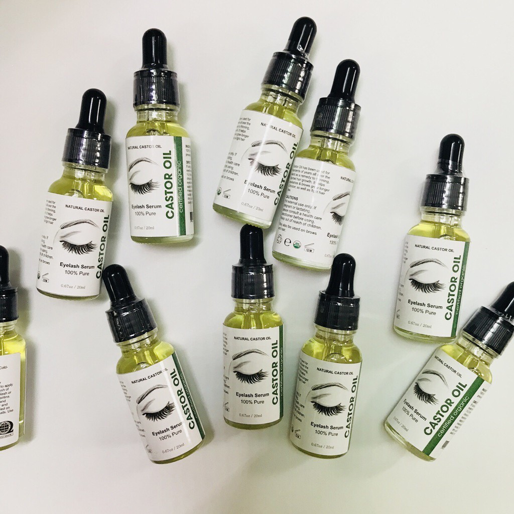 Castor Oil kích thích mọc lông mi sau 2-4 tuần sử dụng Trước khi đi ngủ bạn làm sạch vùng mắt, dùng serum chải mi từ gốc đến ngọn. Để khô tự nhiên rồi đi ngủ, không cần rửa lại. Dùng Serum dưỡng mi 2 lần mỗi ngày để đạt hiệu quả tối đa. Muốn lông mi dày, dài và ít rụng thì hãy ghi nhớ những điều sau: Hạn chế sử dụng lông mi giả: Đây chính là nguyên nhân trực tiếp ảnh hưởng đến độ khỏe mạnh của lông mi thật. Bên cạnh đó, việc kéo mạnh khi gỡ mi giả có thể khiến mi thật của bạn đi theo cùng. Không để lớp trang điểm qua đêm: Lông mi phủ đầy mascara sẽ làm chúng dễ gãy và yếu dần đi. Ăn uống lành mạnh Thật sự thói quen ăn uống có ảnh hưởng rất lớn đối với việc phát triển của các bộ phận, cơ quan trên cơ thể và hàng mi cũng không ngoại lệ. Bên cạnh đó sử dụng Serum dưỡng mi sẽ giúp chắc khỏe, dài giảm gãy rụng. THÔNG TIN SẢN PHẨM Qui cách: 01 lọ 20ml Xuất xứ: Nguyên liệu 100% từ Mỹ