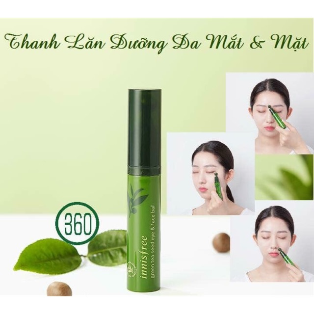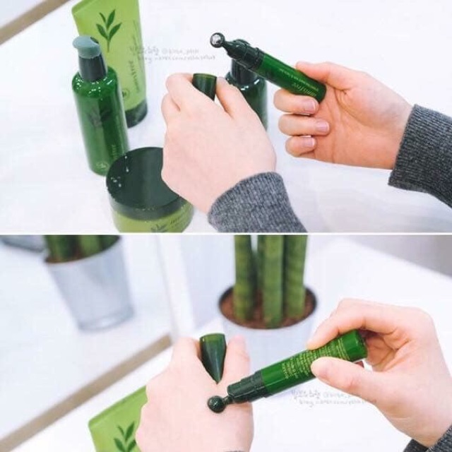 💟 Thanh Lăn Dưỡng Mắt - Da Mặt Green Tea Seed Eye & Face Ball 💟 🔹Là sản phẩm dưỡng và chăm sóc da vùng mắt + các điểm da dễ bị lão hóa (dễ hình thành nếp nhắn, dễ khô…) trên da mặt. 🔹Sản phẩm có thiết kế thông minh với dạng cây chứa đầu bi lăn, chỉ cần ấn nhẹ, tinh chất dưỡng sẽ được đưa ra ngoài 1 lượng vừa đủ cho 1 lần dùng. 🔹Được chiết xuất chính từ tinh chất lá và mầm hạt trà xanh tự nhiên: - Giúp nuôi dưỡng làn da khỏe mạnh, tươi trẻ - Ngăn ngừa các dấu hiệu lão hóa hình thành - Mềm da, tăng cường độ ẩm tự nhiên cho da, ; 🔹Đặc biệt với dạng đầu bi lăn giúp tăng tuần hoàn máu dưới da, massage nhẹ nhàng, đầu kim loại lạnh tạo cảm giác mát lạnh trên da,tạo sự thư giãn cho vùng da mệt mỏi cần chăm sóc. 👉Hướng dẫn sử dụng: - Ấn vào đầu bơm 1-2 lần để dưỡng chất được bơm lên đầu bi lăn. Dùng đầu bi lăn, lăn nhẹ nhàng lên vùng da quanh mắt theo mí mắt. - Sử dụng trước bước dùng kem dưỡng da