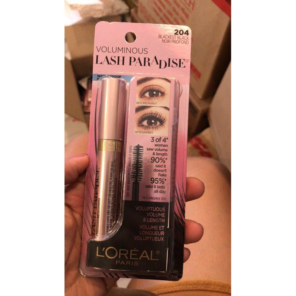 Mascara Loreal Voluminous Lash Paradise Waterproof Mascara góp phần cho đôi mắt trở nên thu hút và đầy quyến rũ hơn một bước cực kì quan trọng trong makeup , đôi là yếu tốt chính để quyết định thần thái cho khuôn mặt . Mascara L'oreal Lash Paradise có ưu điểm vượt trội là giúp làm dài và dày mi, không lem, không vón cục và rất an toàn cho mắt. Loreal Mascara Lash Paradise giá này sử dụng rất dễ dàng và có thể giữ mi cong trong vòng 5-6 tiếng. Chải giúp mi tơi ra rõ rệt hẳn. Làm cho đôi mắt to hơn với đôi mi cong hoàn hảo . Gây lôi cuốn cho người đối diện ngay .