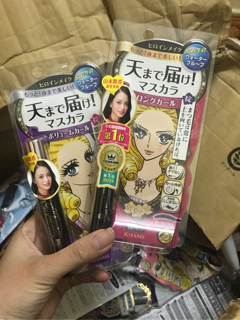 Mascara Kiss me Heroine là mascara cực kì nổi tiếng tại Nhật mà bất cứ siêu thị nào cũng phải có,Mascara Kiss ở khoảng khoản tách mi va cực tự nhiên lâu trôi, chống nước, không lem, không dính, không vón cục Công dụng Mascara Kiss me Nhật Bản Mascara Kiss me Heroine chứa các sợi polymer kéo dài lông mi đến 120% Bám chặt vào từng sợi mi mà không vón cục. Với Polymer giúp lông mi cong tối đa và dài lâu trong suốt ngày dài năng động. Không thấm nước, nước mắt, dầu, mồ hôi và bã nhờn. Công thức cải tiến mới giúp lông mi cong lâu hơn. Bàn chải cong giúp bạn có thể dễ dàng chải lông mi ở các cạnh của mắt. Có chứa thành phần dưỡng ẩm.,cực kì lâu trôi , không thấm nước . Chiết xuất hoa cúc và dầu oliu giữ cho mi bạn không bị khô, dễ dàng tẩy trang Thiết kế đầu chổi hơi cong chếch lên rất dễ dàng tạo cong và apply lên mi của bạn đôi mắt bạn sẽ to tròn, cuốn hút.