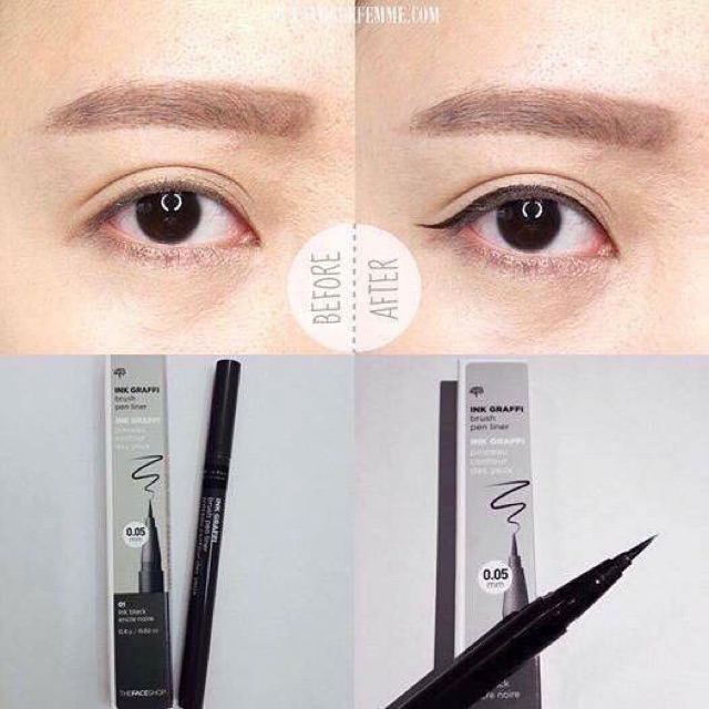 💦💦Kẻ Mắt Nước Ink Graffi Brush Pen Liner SALE 50% còn #150k Có 2 màu đen và nâu 🍄Đầu Cọ Siêu Mảnh 0.05mm, cho nét kẻ thật tự nhiên, kẻ sát chân mi, giữa các gốc mi, dễ dàng điều chỉnh độ dày mỏng cho phù hợp với phong cách trang điểm theo ý thích mỗi ngày ✨Không lem trôi, không thấm nước đến 24h cho nét kẻ bền đẹp suốt cả ngày ✨Thiết kế thân bút dễ cầm, dễ điều khiển giúp thao tác cực dễ, phù hợp cho người mới make up hoặc những nàng lười cần nhanh – gọn – đẹp ✨Mực ra đều, liên tục và có độ bóng nhẹ nhìn rất sang và thanh thoát, không làm khuôn mặt bị già, dữ kê cả khi bạn kẻ đường liner thật rõ và đậm ✨Chất mực lâu khô, dùng đến khi hết mực, rất tiết kiệm.