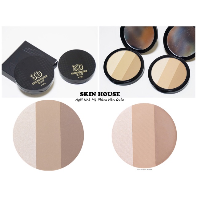 Phấn tạo khối A'Pieu 3D Contouring Kit Trọng lượng: 9g - Bảng tạo khối tiện dụng với 3 chức năng trong 1: highlight chứa nhũ và phấn nâu lì giúp gương mặt thanh thoát và cực kì ăn ảnh, che khuyết điểm và tạo khối. - Bảng tạo khối phấn 3 ngăn giúp tạo đường nét cho gương mặt, phấn Highlight dạng phấn mỏng mịn tự nhiên phù hợp với các nàng thích nhẹ nhàng. - Chất phấn siêu mịn, dễ tán và bám da - Độ lên màu chuẩn, giúp tạo đường nét cho gương mặt 1 cách nhẹ nhàng tự nhiên nhất mà không bị giả, cực kì dễ sử dụng, rất phù hợp cho các bạn mới tập make up. - Chiết xuất từ những thành phần thiên nhiên như hạt sen, bơ hạt xoài hỗ trợ dưỡng da. Có 2 tone: #01 Neutral Warm (tone sáng) #02 Neutral Cool (tone tự nhiên)