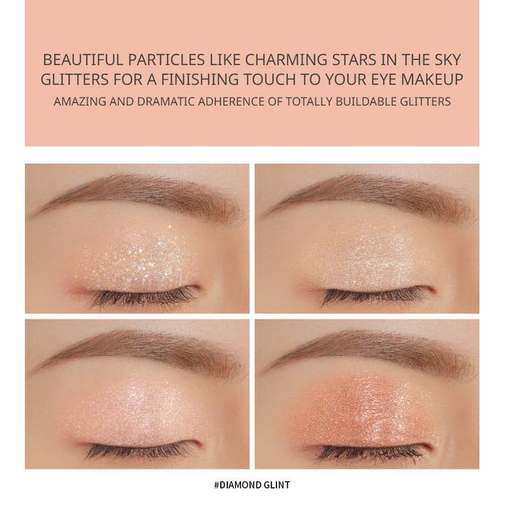 Thông tin sản phẩm: 1. Phụ kiện cho đôi mắt - Công thức phấn được cố định vững chắc, bao bọc các hạt nhũ long lanh tinh tế. - Giữ cho lớp trang điểm mắt bền lâu trên da chỉ với một lần chạm. 2. Hiệu ứng tan chảy lấp lánh - Lớp phấn lướt mượt mà trên da và nhẹ nhàng bám vào da, tạo hiệu ứng ánh sáng rực rỡ hơn cho đôi mắt 3. Thiết kế màu sắc hài hòa - Bảng phấn bao gồm 4 ô với 4 tone màu lì, nhũ nhẹ và nhũ lớn. Mang đến một sự kết hợp lấp lánh hoàn hảo cho đôi mắt. 4. Kích thước mini gọn nhẹ và tiện lợi - Một bảng phấn mắt với kích thước nhỏ gọn, giúp bạn dễ dàng bỏ vào túi xách và make up lộng lẫy cho đôi mắt mọi lúc mọi nơi.