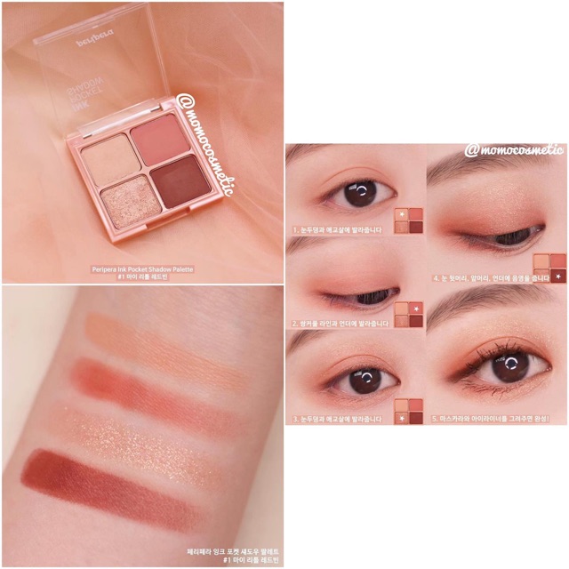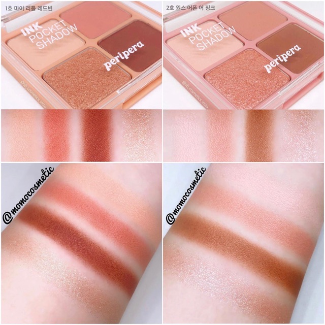 PHẤN MẮT PERIPERA INK POCKET SHADOW . 🍒 Mỗi hộp có 4 tone màu khác nhau: màu nền, màu khối, màu nhấn, màu highlight 🍒 Phù hợp với makeup hàng ngày hoặc đi tiệc đều rất xinh 🍒 Hạt phấn mềm mịn như bơ, bám da rõ rệt, tán dày hay mỏng sẽ cho hiệu quả khác nhau 🍒 Thiết kế nhỏ mà chắc tay, vỏ nhựa cao cấp trong suốt . 🔜 Có sẵn 2 tone màu: #01 - My Little Red Bean - Cam đào #02 - Once Upon A Pink - Hồng đào