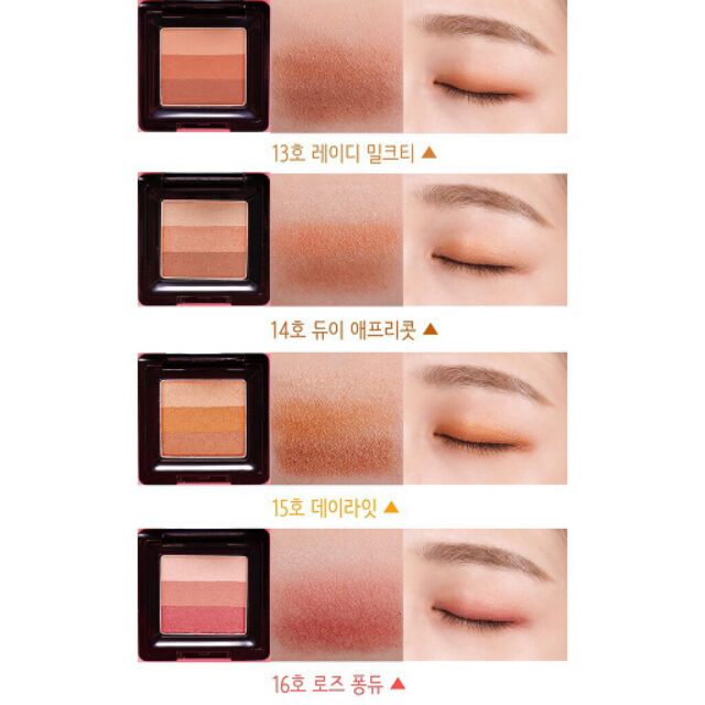 ✨✨Phấn mắt Missha Triple Shadow siêu đẹp💋 ✔Xuất xứ: Hàn Quốc ✔ Minisize ❤Makeup đôi mắt đẹp long lanh sương khói, chuyên nghiệp hơn cả chuyên nghiệp! Chỉ trong 1 bước thôi! Không cần cọ, không cần công thức cấu kì, tô vẽ tỉ mẩn! Tất cả những gì bạn cần, là hộp phấn mắt bé teo này! Missha Triple Shadow – Đẹp vi diệu! ❤Missha Triple Shadow – là bảng màu mắt hội đủ quá nhiều yếu tố ưu việt! 🔽Thứ nhất: Bảng màu mắt 3 ô Missha Triple Shadow tiện lợi. Mua 1 hộp được 3 ô màu. Đánh lẻ từng màu là đủ đẹp ngất ngây! 🔽Thứ 2: Sắp xếp trình tự 3 gam màu quá đỗi hòa hòa và nghệ thuật. => Cách dùng siêu nhanh gọn, chỉ cần dùng đầu ngón tay quệt ngang 3 ô màu, sau đó thoa lên mắt là ukie. Rất ư là lý tưởng với những bạn gái không biết phối màu và trang điểm mắt nè! 🔽Thứ 3: Tone chủ đạo trang nhã, ánh nhũ nhẹ bắt sáng, giúp đôi mắt long lanh, có chiều sâu mà vẫn rất sang trọng, hông bị lấp lánh sến súa nhen! 🔽Thứ 4: Bám màu quá tốt, đánh lên đi quẩy tưng bừng, đến cuối ngày, đôi mắt vẫn cứ thế - đẹp hút hồn. 🔽Thứ 5: Hộp bé teo – xinh không chịu được! Giá siêu mềm - cưng quá chừng luôn! 💯💯💯Makeup đôi mắt chuyên nghiệp – chỉ trong 1 bước! Nhanh - gọn - lẹ, và xuất sắc! Missha Triple Shadow - Chỉ nhiêu đây thôi, là đủ! Có sẵn các màu dứoi ảnh Giá: 110k/1 hộp chính hanzg nhé các nàng