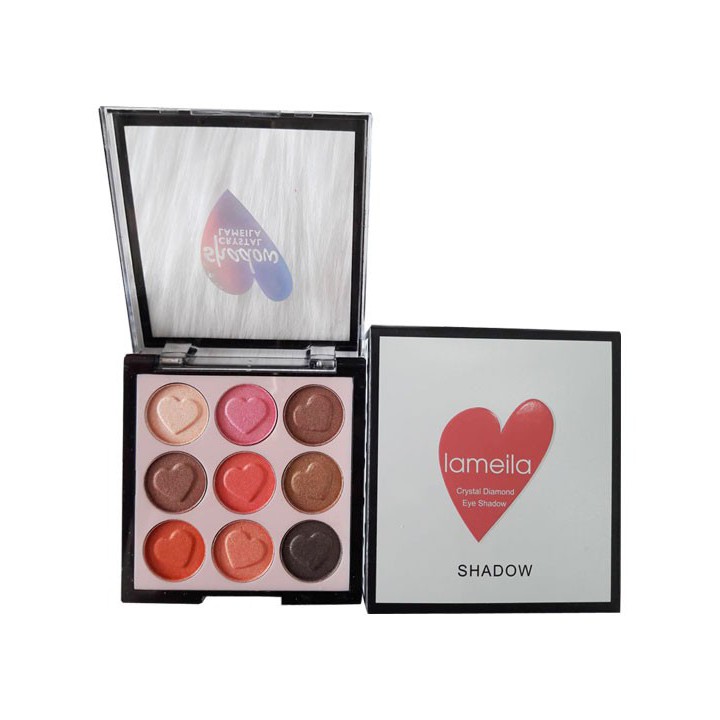 Phấn mắt Lameila Crystal Diamond Eye Shadow chính hãng có tác dụng làm đẹp cho đôi mắt, với khả năng bám lâu trôi, độ lên màu chuẩn, thiết kế hiện đại, giúp bạn có đôi mắt sâu và có điểm nhấn, làm bạn càng thêm thu hút. Phấn dễ tán, độ lên màu chuẩn, bám màu tốt. Nhũ lên màu tươi sáng, tone màu nóng như đồng, cam, đỏ, vàng, nâu… Chất phấn mềm mượt, chống nước, bền màu suốt nhiều giờ liền. Hộp gồm 9 ô màu, nhỏ gọn, tiện lợi, dễ mang theo. Thiết kế hình trái tim cực cute, bắt mắt, hiện đại. Mở nắp sản phẩm, dùng cây cọ trong sản phẩm tô vẽ mắt tùy theo màu và chỉnh độ đậm nhạt mà bạn yêu thích. Bảo quản sản phẩm nơi thoáng mát, tránh lưu trữ ở nhiệt độ cao, tránh ánh nắng trực tiếp. Tránh xa tầm tay trẻ em. *** CAM KẾT HÀNG CHÍNH HÃNG 100%. ~~~~~~~~~~♥️myphamgiasiquan9♥️~~~~~~~~ ▶️: Mở cửa từ 8:OO - 18:00 mỗi ngày tại: ▶️ 1C đường số 5, Tăng nhơn phú B, quận 9, tp.HCM ▶️ zalo/ call: 0389.043278 ( Ngân)