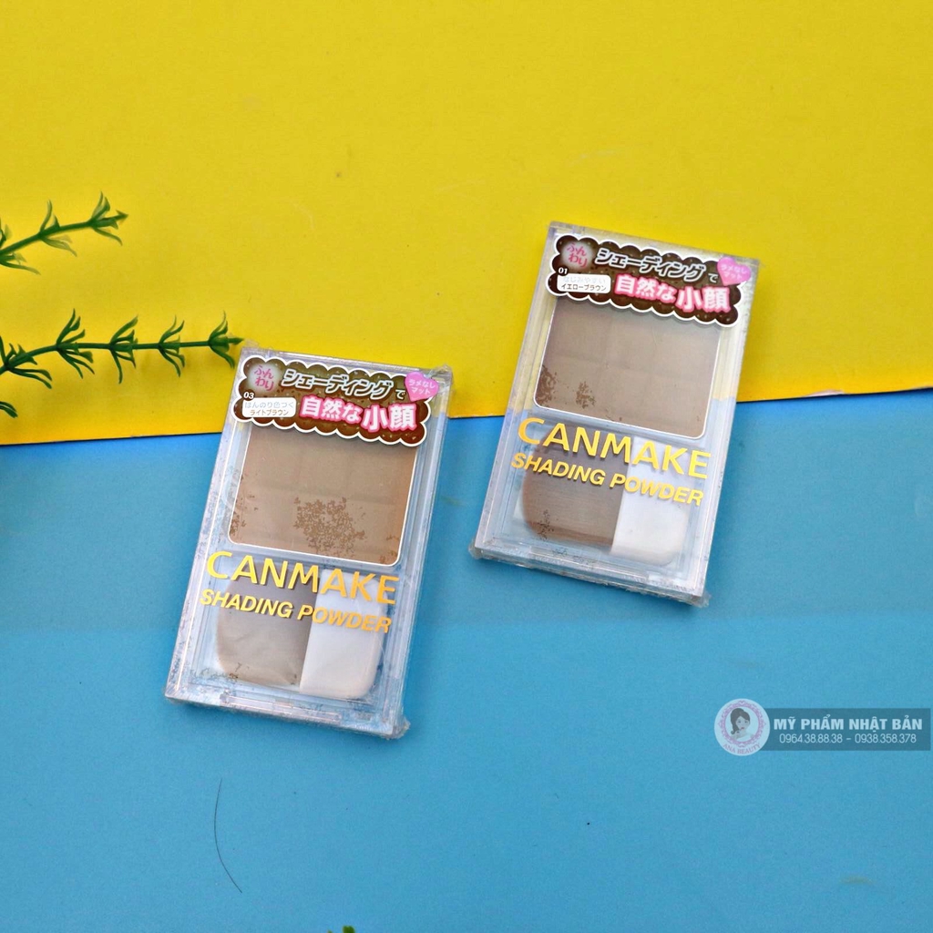 CANMAKE SHADING POWDER😍😍💞💞 😜Không hợp make up đậm ☺️☺️Chất phấn thì mịn, nhẹ, apply lên da là tiệp vào liền. Công thức trong thành phần của Canmake luôn cực kì an toàn cho da, không mùi nên mình có thể giảm thiểu tối đa khả năng kích ứng da. Nói chung về chất lượng phấn thì mình có thể tin tưởng và khá hài lòng với phấn tạọ khối Canmake Shading Powder này. ☺️Phấn tạo khối này có màu đậm nhưng khi lên da khá nhạt. Tuy nhiên thì nó vẫn có chức năng tạo khối nhẹ nhàng, cho khuôn mặt trở nên sắc nét hơn, thon gọn hơn, có điểm nhấn hơn. Có thể do là sản phẩm của Nhật nên nhãn hàng này tạo ra sản phẩm với tiêu chí hàng đầu là phù hợp với phong cách make up của các cô nàng Nhật Bản nên khi lên da màu sắc nhạt, nếu không biết cách đánh có khi còn bị “nhạt nhòa” luôn ấy. Nhìn chung thì dùng Canmake Shading Powder tạo khối khá ổn nếu make up nhẹ nhàng, trong trẻo 😁😁 Có 2 tone màu: [01] Danish Brown [03] Honey Rusk Brown 💁♀️💁♀️Hướng dẫn sử dụng 😁Sau khi hoàn thành lớp nền và phấn phủ, mình dùng cọ apply phấn lên những vùng cần tạo khối như mũi, trán, gò má… để cho đường nét khuôn mặt thon gọn và bắt sáng hơn, tạo sự khác biệt cho khuôn mặt đó. Phấn có 2 tone màu nên các nàng lưu ý chọn màu cho phù hợp với gương mặt nhất nha. Vì lên màu khá nhạt nên mình khuyên nên chọn tone nâu đậm cho những vùng cần sự thon gọn, còn nâu sáng cho những vùng cần bắt sáng trên mặt -------------------------------