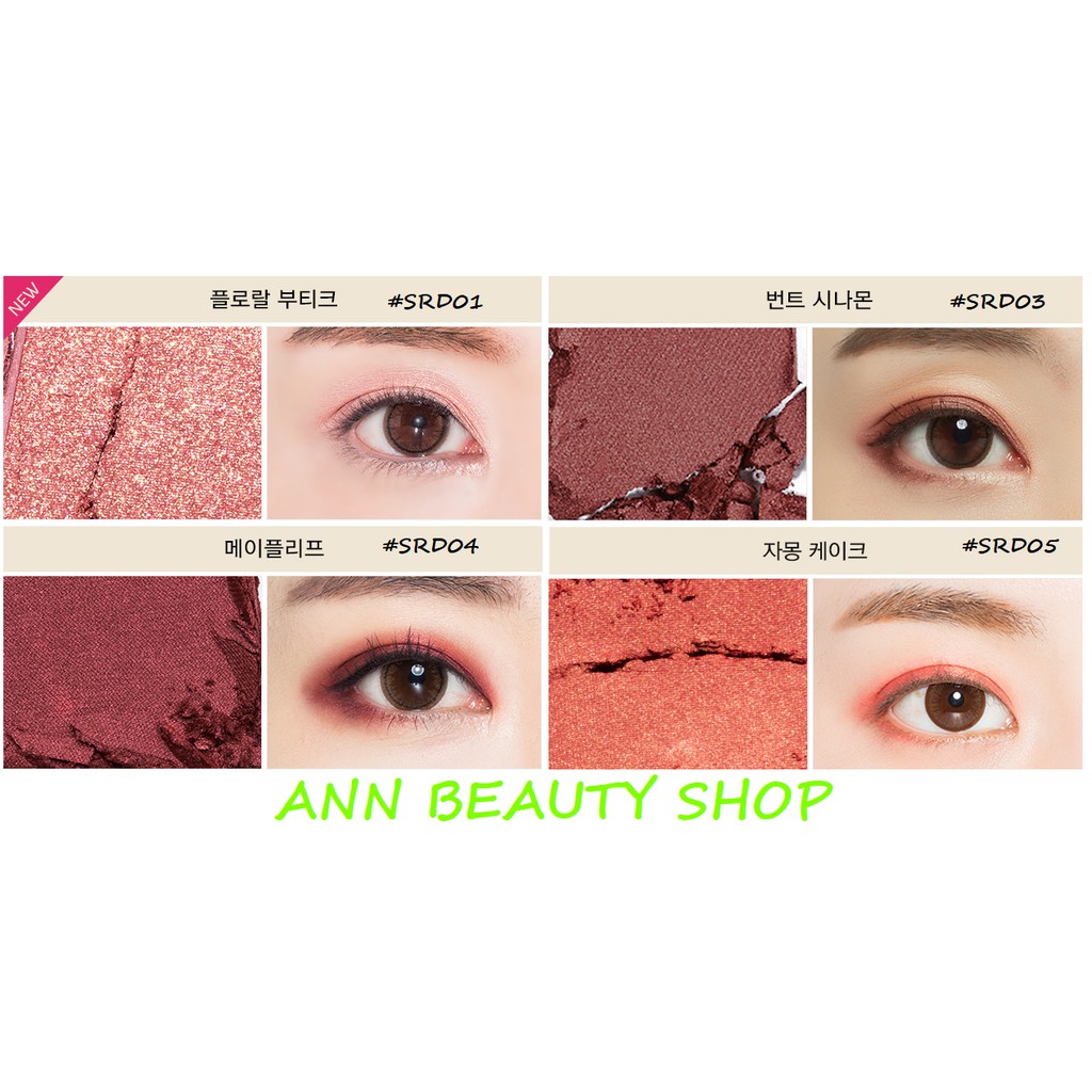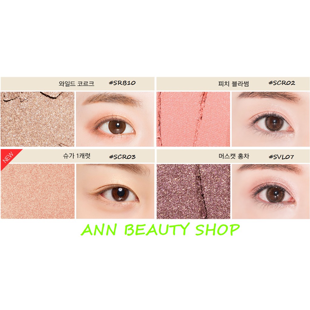Phấn Mắt Missha Modern Shadow (matte) sale mạnh nhất trong lịch sử nhé mọi người, bình thường có sale 50% cũng 80k-90k rồi ạ Trọng lượng: 2g - Phấn Mắt Missha Modern Shadow là dòng phấn mắt đến từ thương hiệu đình đám từ Hàn Quốc - Missha. Hộp phấn mắt được thiết kế xinh xắn với kích cỡ nhỏ gọn, hiện đại và rất tiện lợi. Bên cạnh đó, bộ sưu tập màu phấn của Missha lại cực kì đa dạng, các tông màu matte mềm mại, tôn lên vẻ đẹp đôi mắt các cô gái và vô cùng bền đẹp lâu trôi. Bột phấn siêu mịn, bắt ánh sáng tốt mang lại ánh nhìn tuyệt đẹp cho đôi mắt các nàng. - Phấn Mắt Missha Modern Shade Shadow mang lại vẻ mềm mại và tự nhiên cùng thành phần an toàn không gây hại và kích ứng cho mắt. ► CÓ 3 DÒNG 1/ Phấn Mắt Missha Modern Shadow (MATTE) - Đây là dòng MATTE (tức là phấn mắt dạng phấn LÌ ko nhũ hoặc nhũ nhẹ), rất tự nhiên và dễ xài hen - Gồm các màu: + MBR07 + MBR10 + MRD02 (nhũ nhẹ) + MOR01 + MCR05 + MCR07 (nhũ nhẹ) + MCR11 + MPK08 + MPK09 (nhũ nhẹ) 2/ Phấn Mắt Missha Modern Shadow (GLITTER -nhũ lớn) - Gồm các màu + GBR09 + GRD03 3/ Phấn Mắt Missha Modern Shadow (SHIMMER - nhũ nhuyễn) - Gồm các màu + SRD01 + SRD03 + SRD04 + SRD05 + SBR10 + SCR02 + SCR03 + SVL07