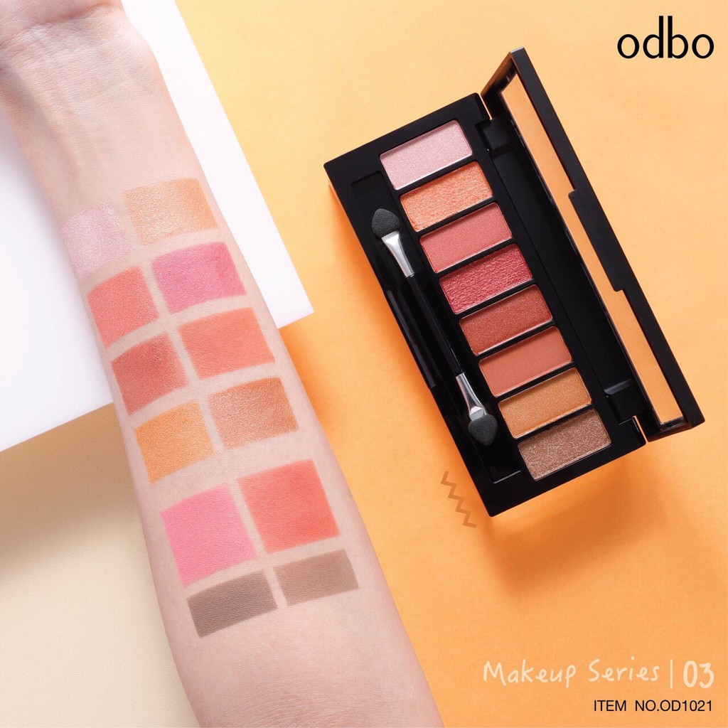 Phấn mắt Odbo 2 tầng OD1021 a Xuất xứ: Thái Lan Set make up Odbo gồm: - 8 màu mắt - 2 má hồng - 2 phấn chân mày - 1 cọ má hồng - 1 cọ màu mắt - 1 cọ chân mày Hướng dẫn sử dụng: Sử dụng đầu cọ lớn để tản phấn mắt trên diện rộng, như tạo khối, đánh lót mắt Sử dụng đầu cọ hẹp để tô điểm phần đường nét hoặc tạo điểm nhấn chân mắt, dưới mi mắt